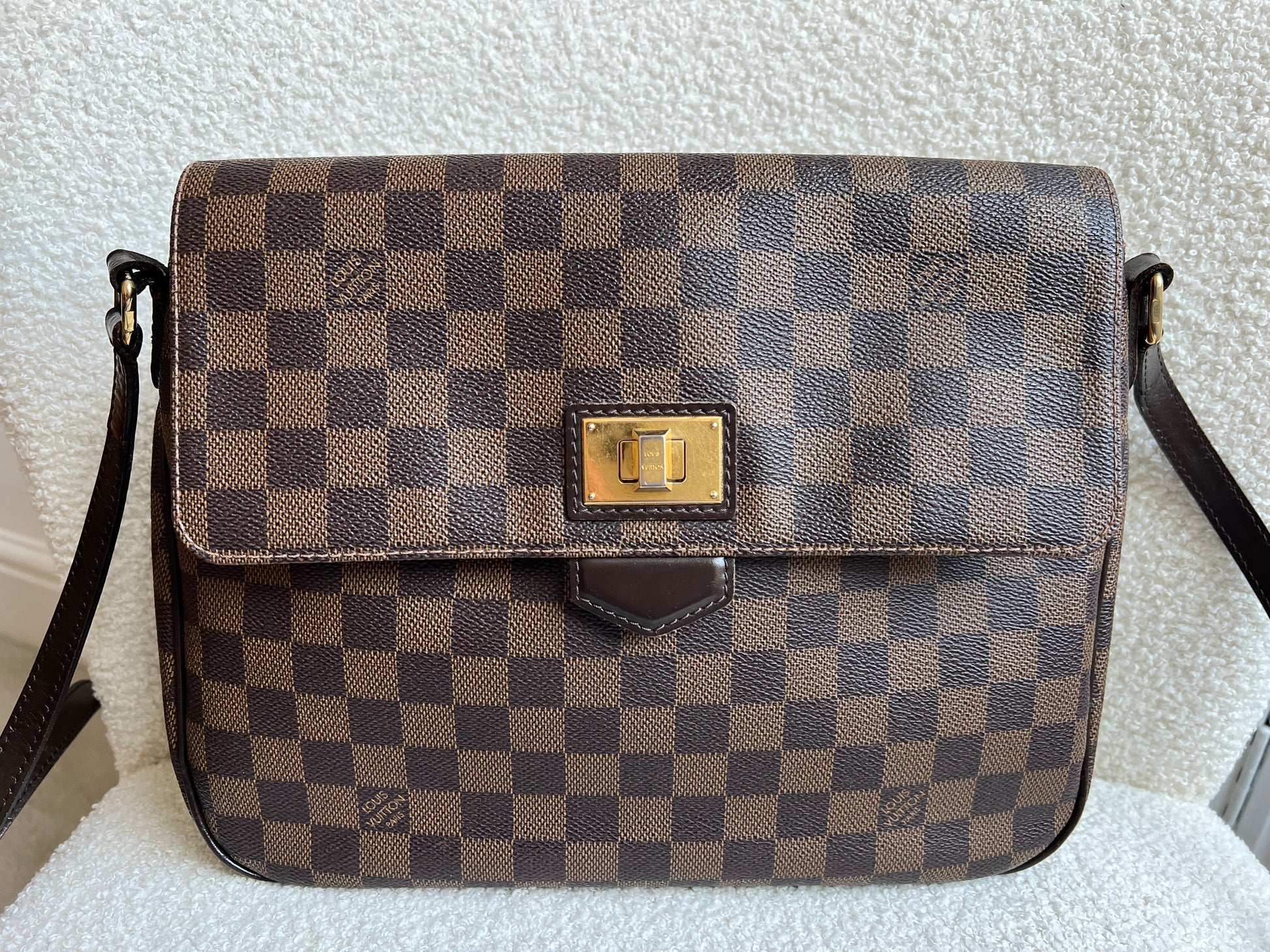 Louis Vuitton Besace Rosebery Shoulder Bag in Damier Ebene canvas with gold hardware. This spacious shoulder / cross body bag is practical and durable making it the perfect day to day bag. Crafted in damier ebene canvas with a turn lock closure, it is both casual and chic. Can be worn over shoulder or cross body using long adjustable strap.