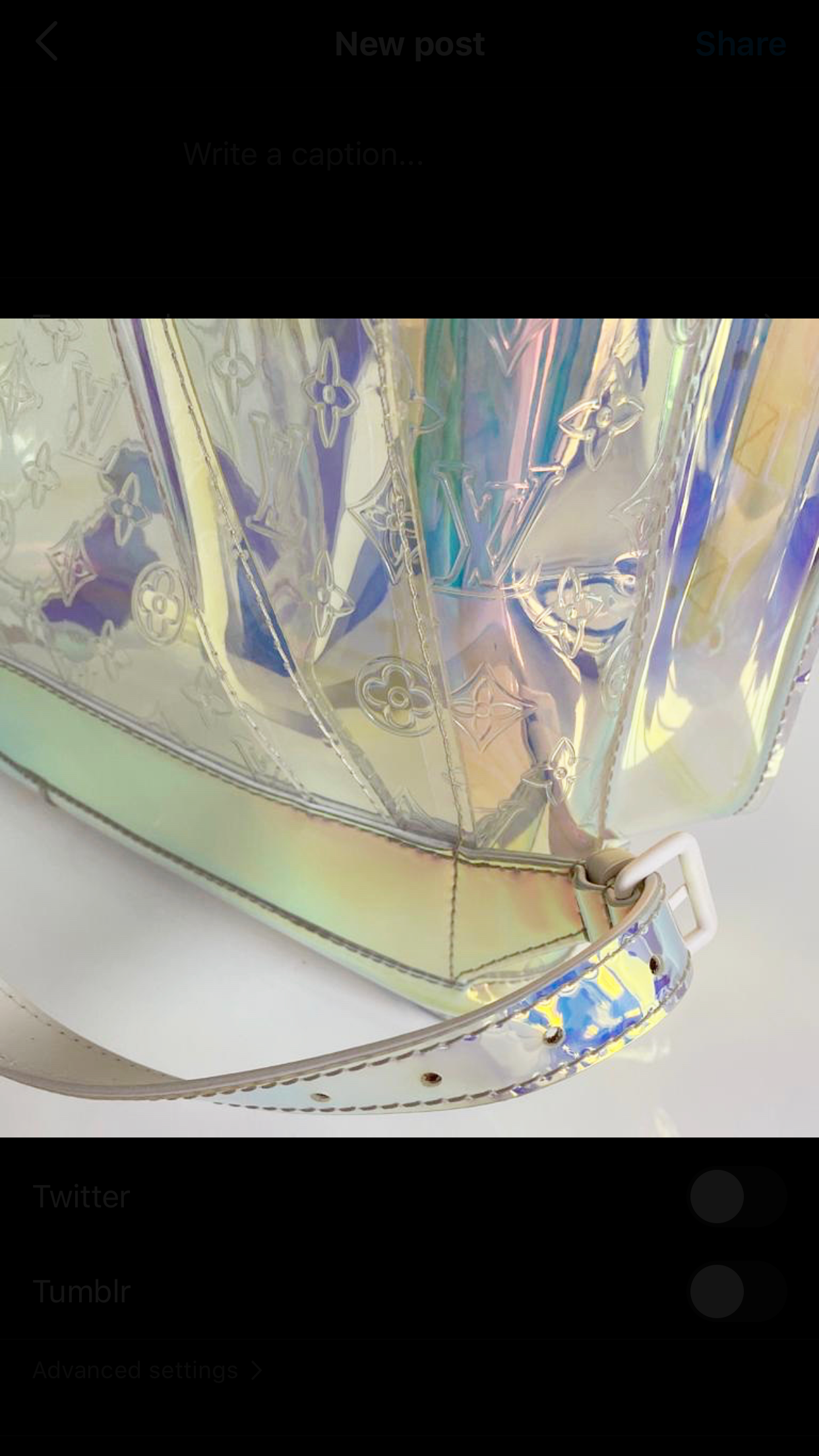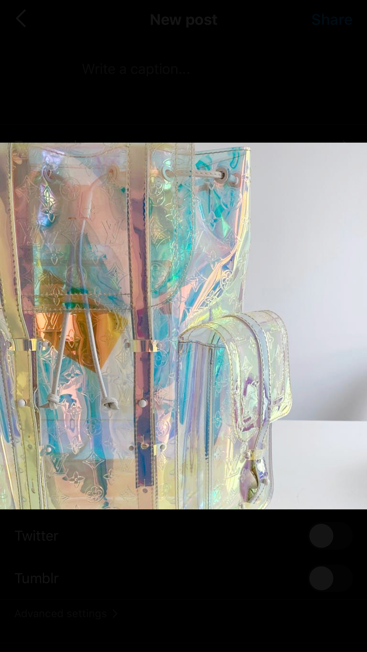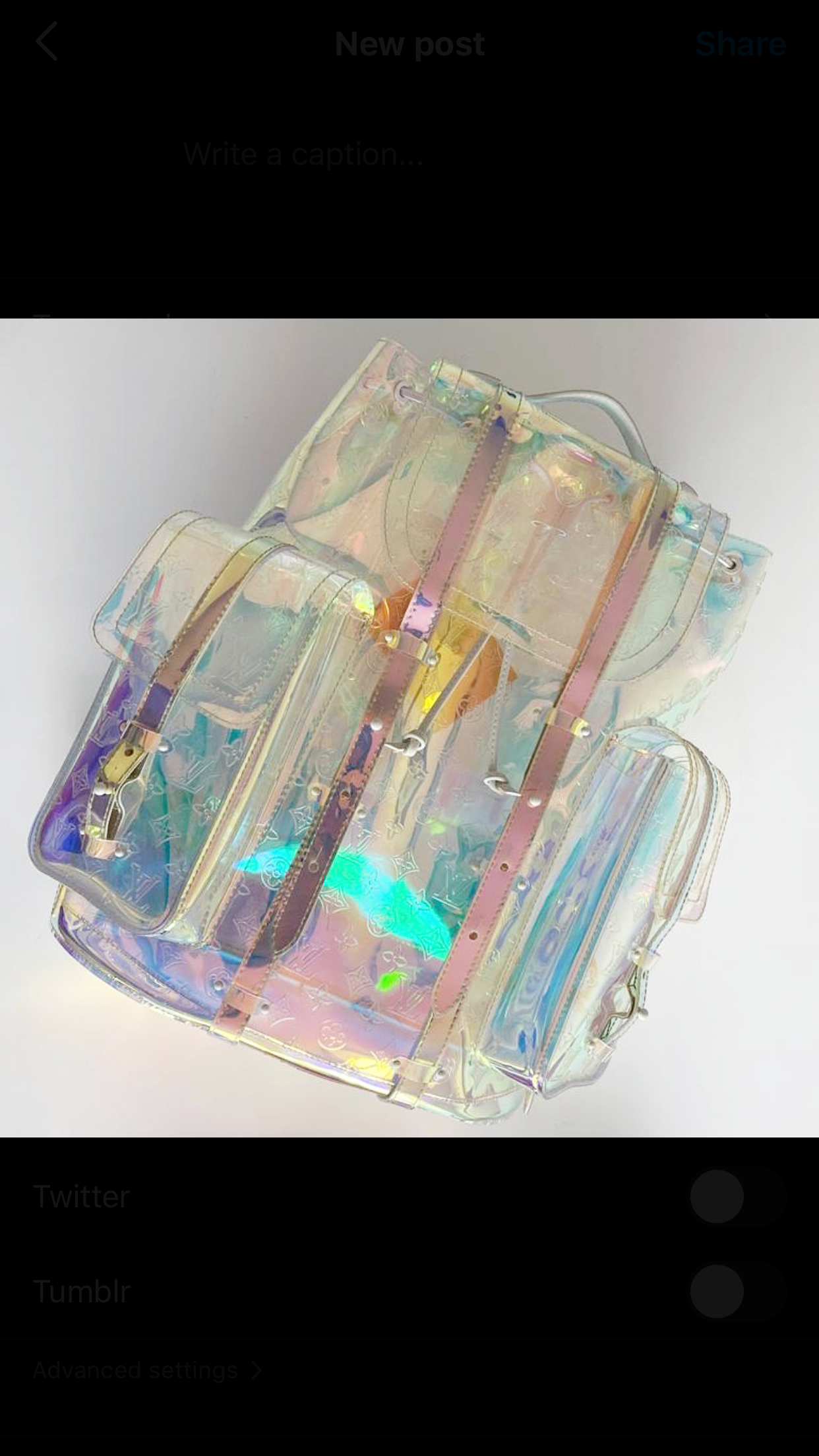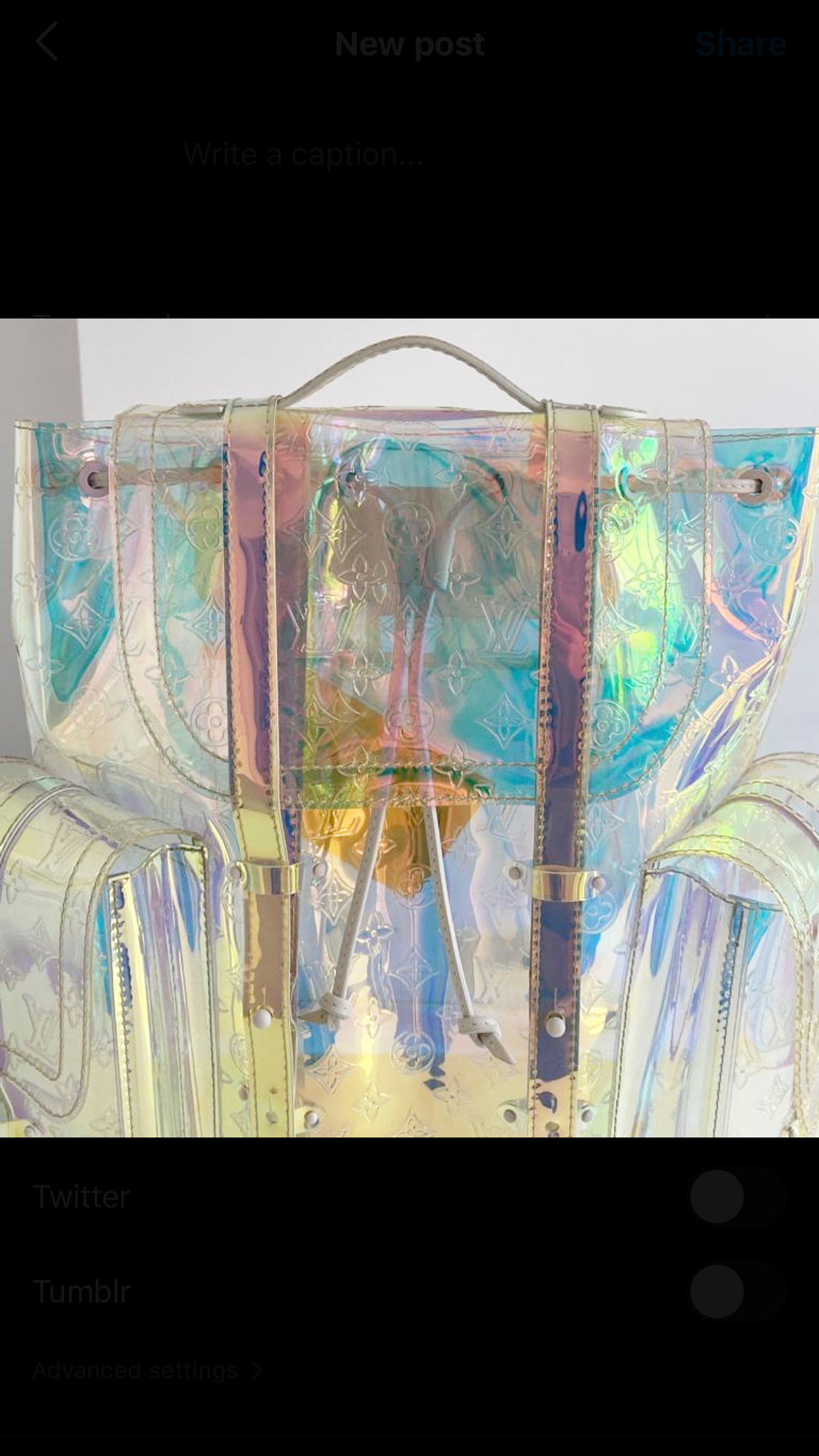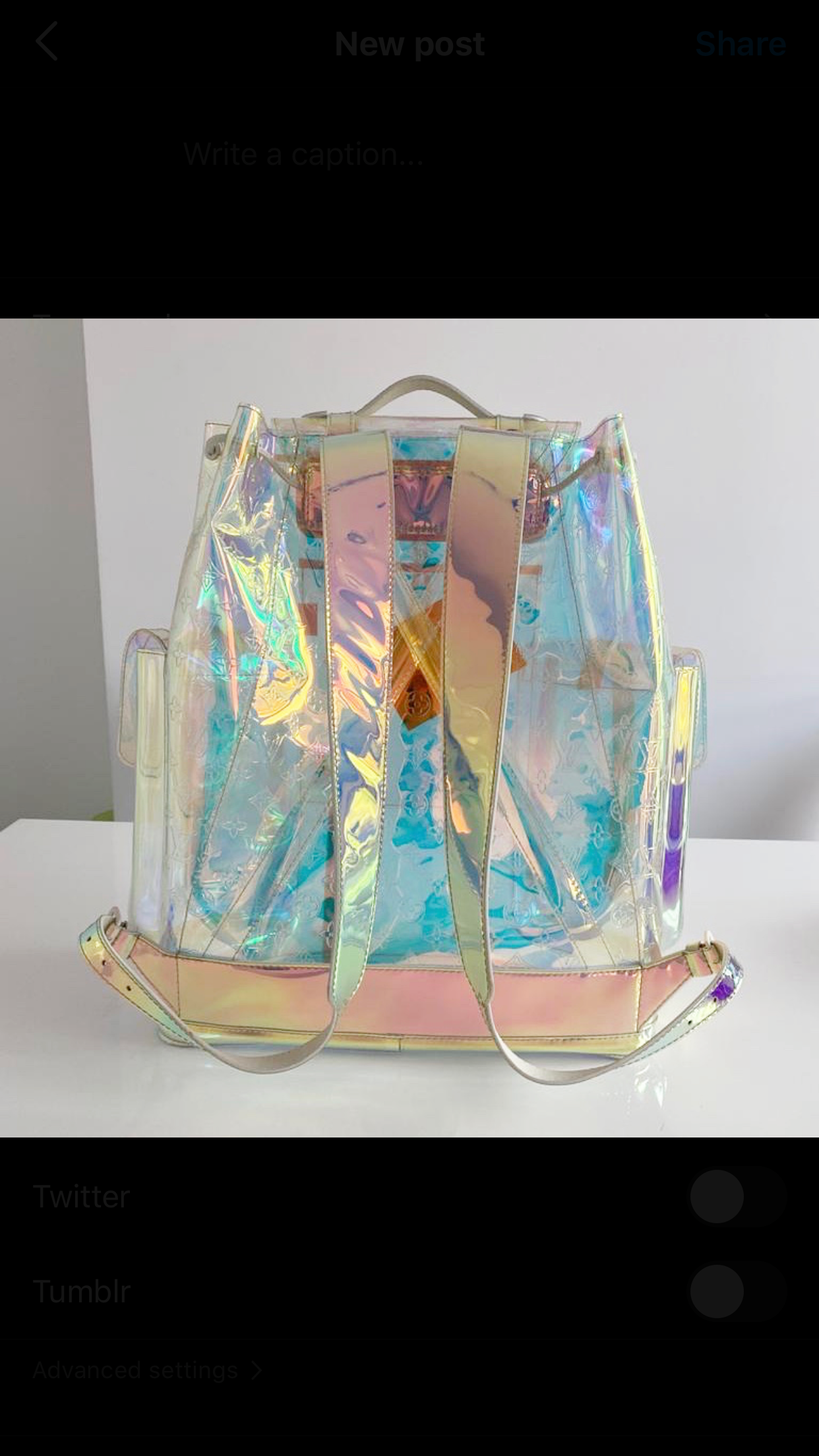 Structured backpack crafted from iridescent PVC, embossed with classic monogram. This piece is part of the Louis Vuitton Fall/ Winter 2019 collection.