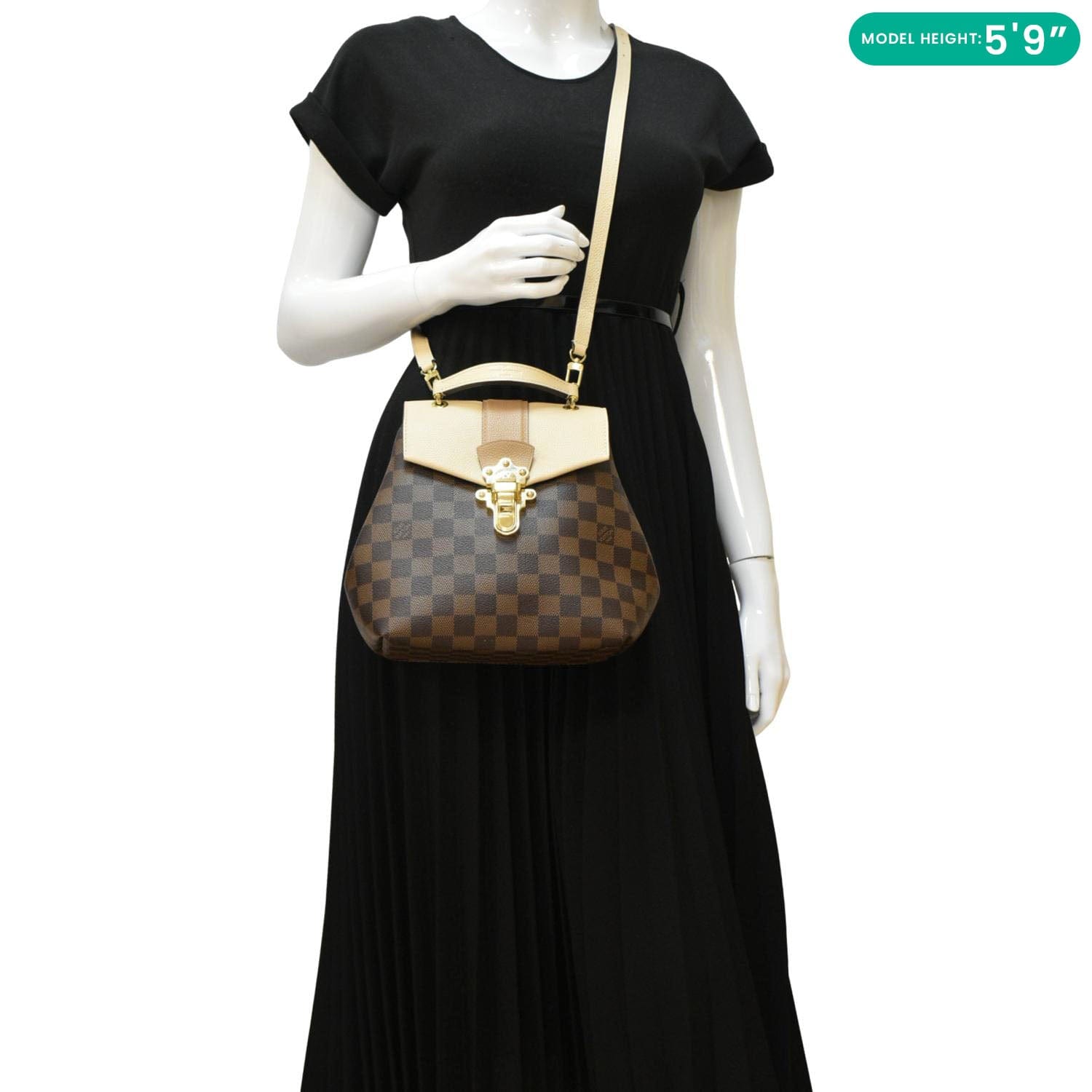 Elevate your look with the sophisticated LOUIS VUITTON Clapton Damier Ebene Backpack Bag in elegant creme beige. Crafted with iconic Damier Ebene canvas, this bag combines luxury and practicality for a timeless accessory.