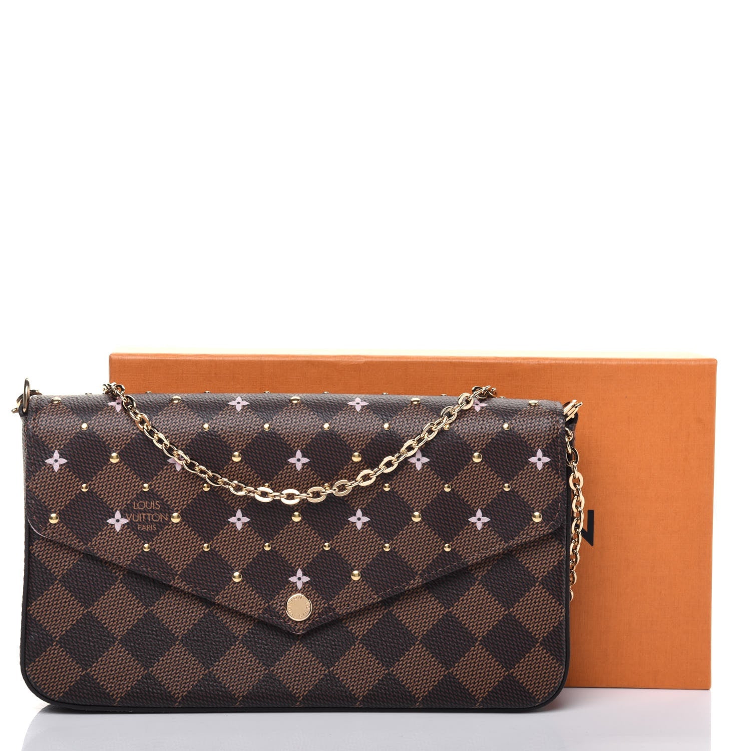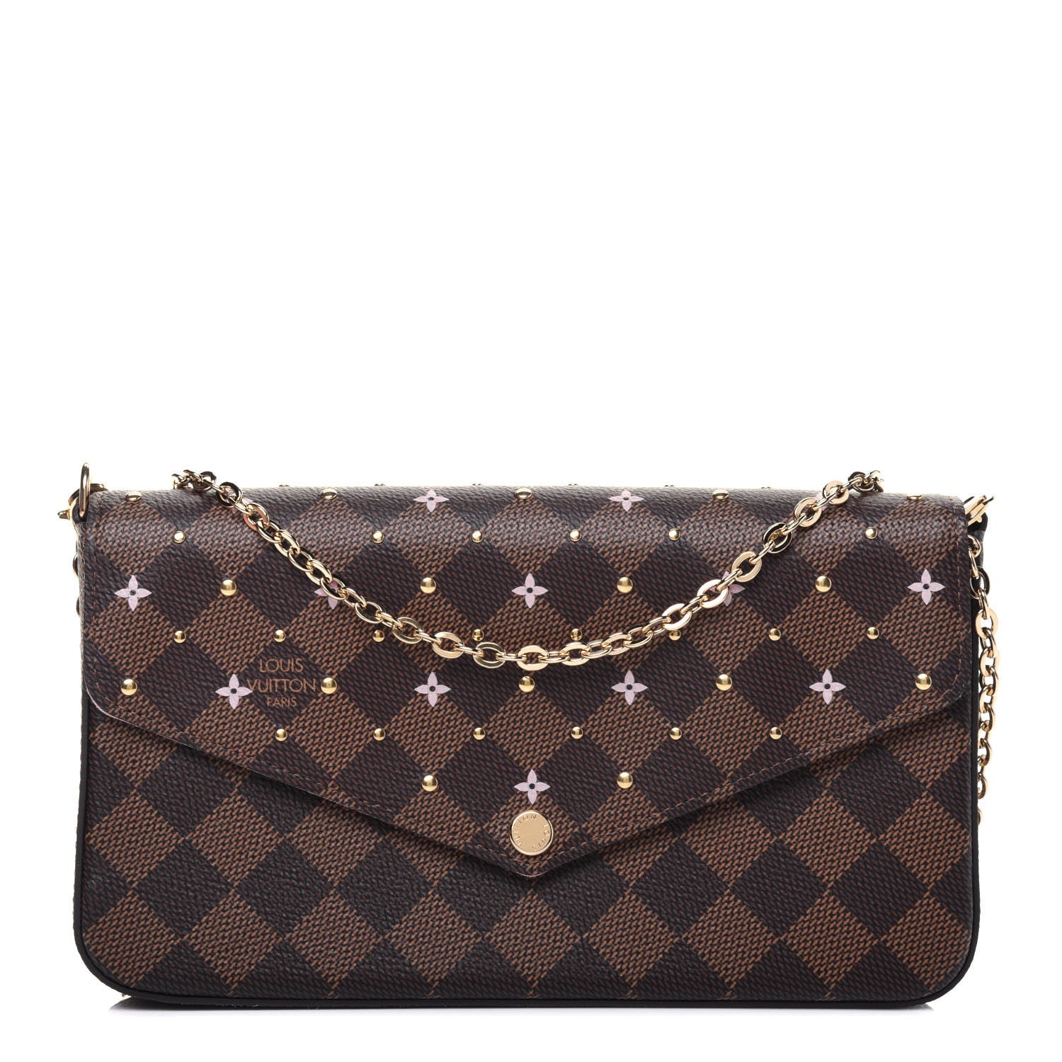LOUIS VUITTON DAMIER EBENE FLOWER STUDDED FELICIE POCHETTE
