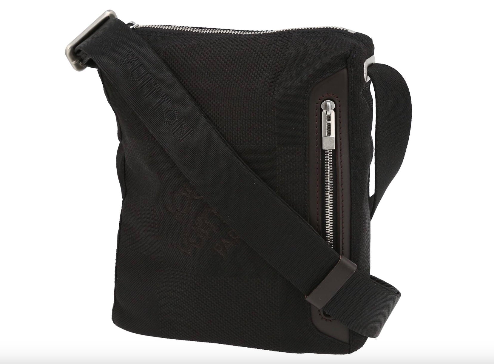 This Stylish Messenger Bag is Crafted of Black canvas with dark oversized Damier Geant check canvas.