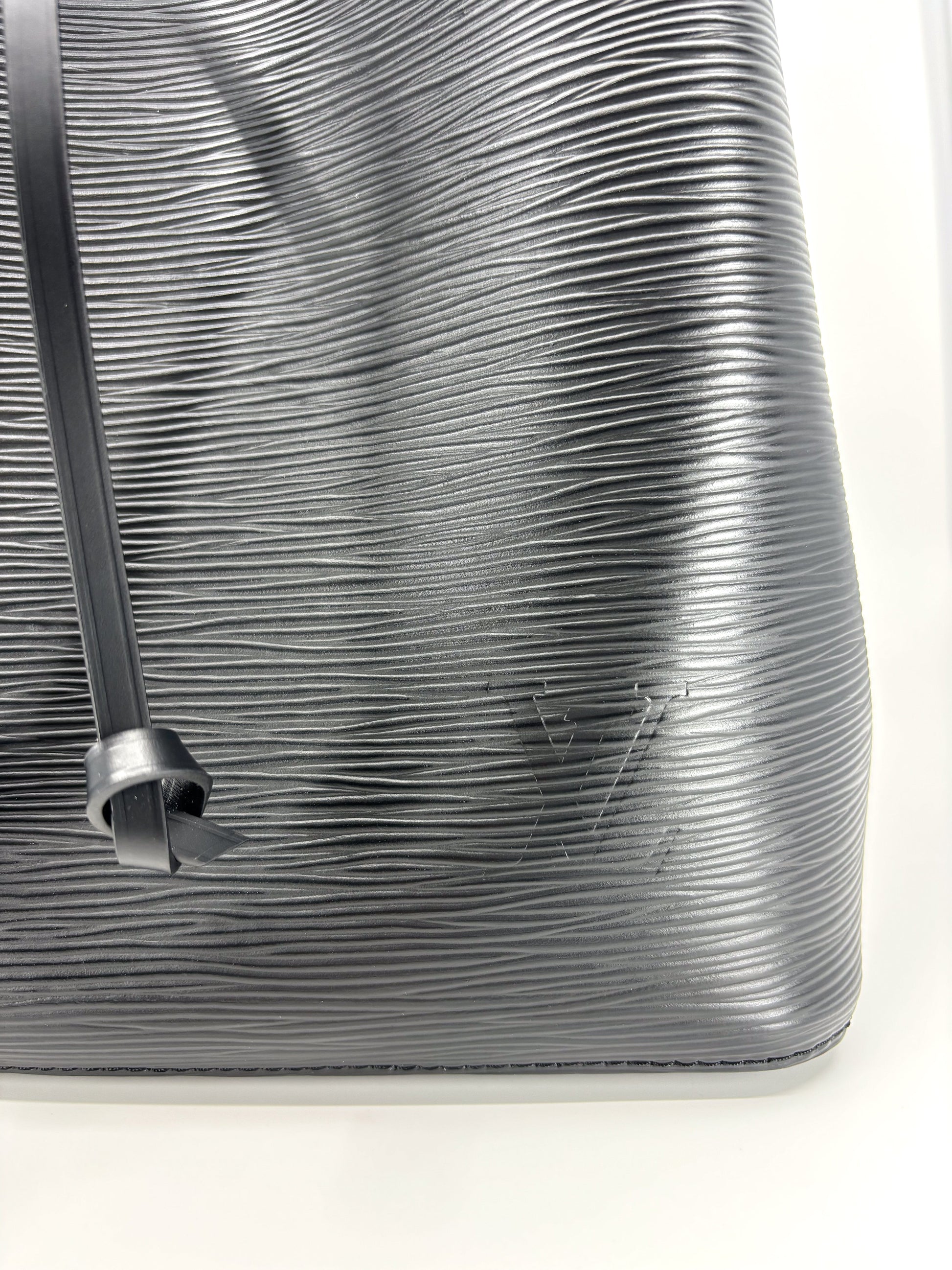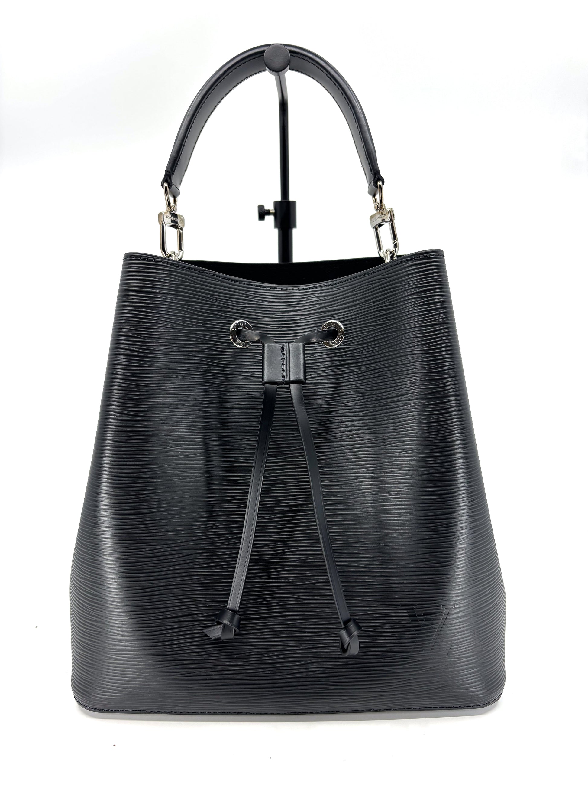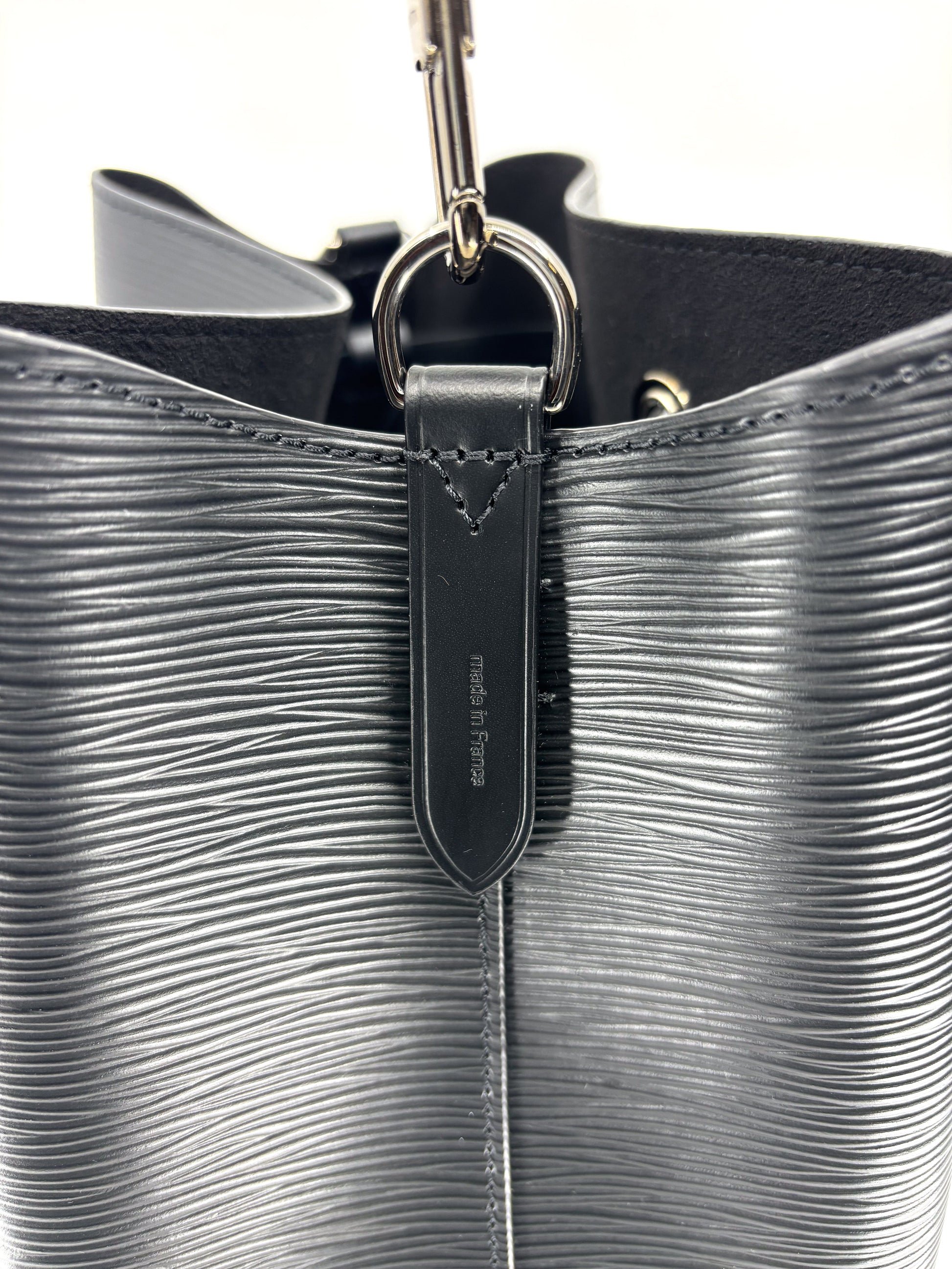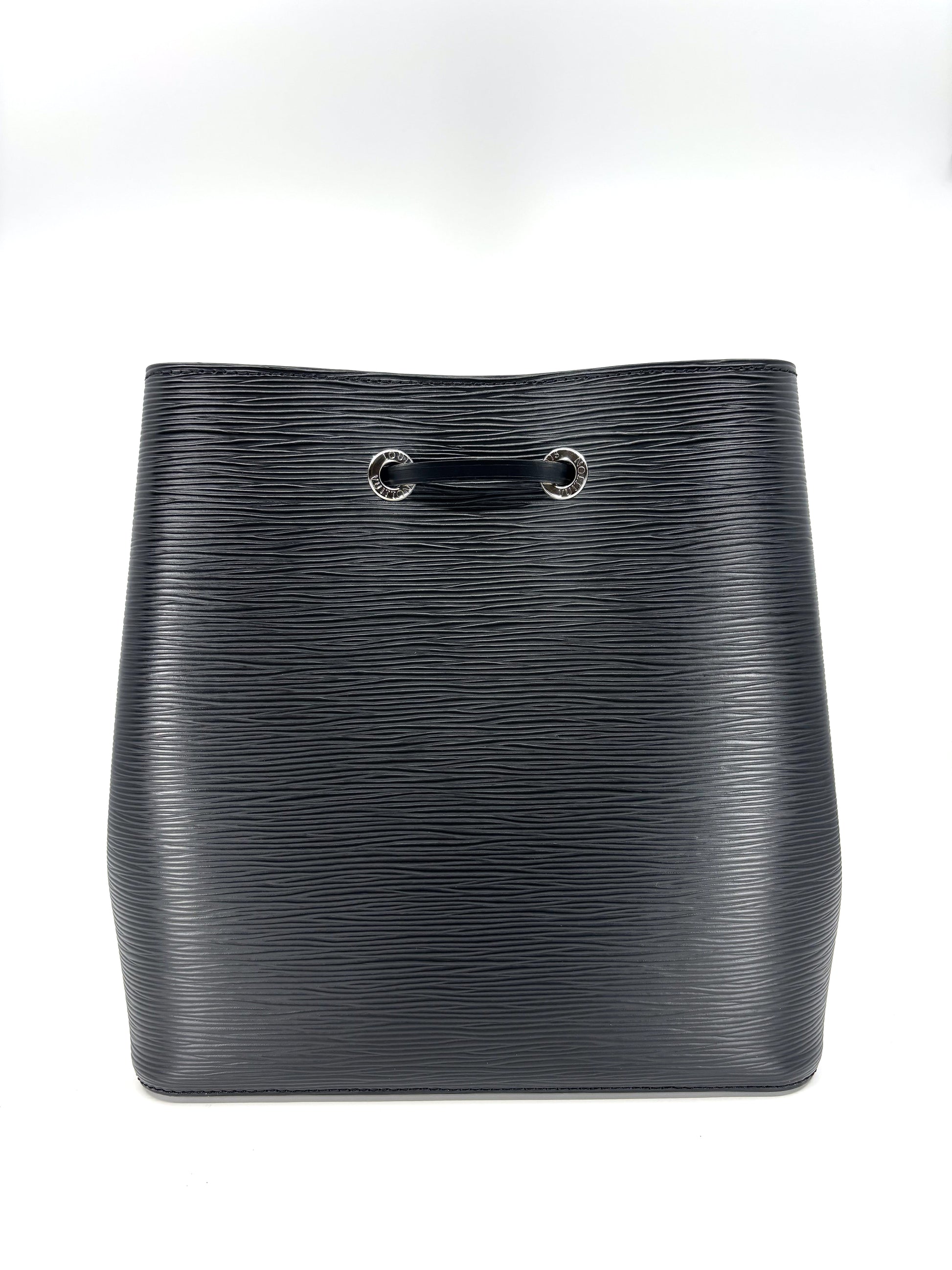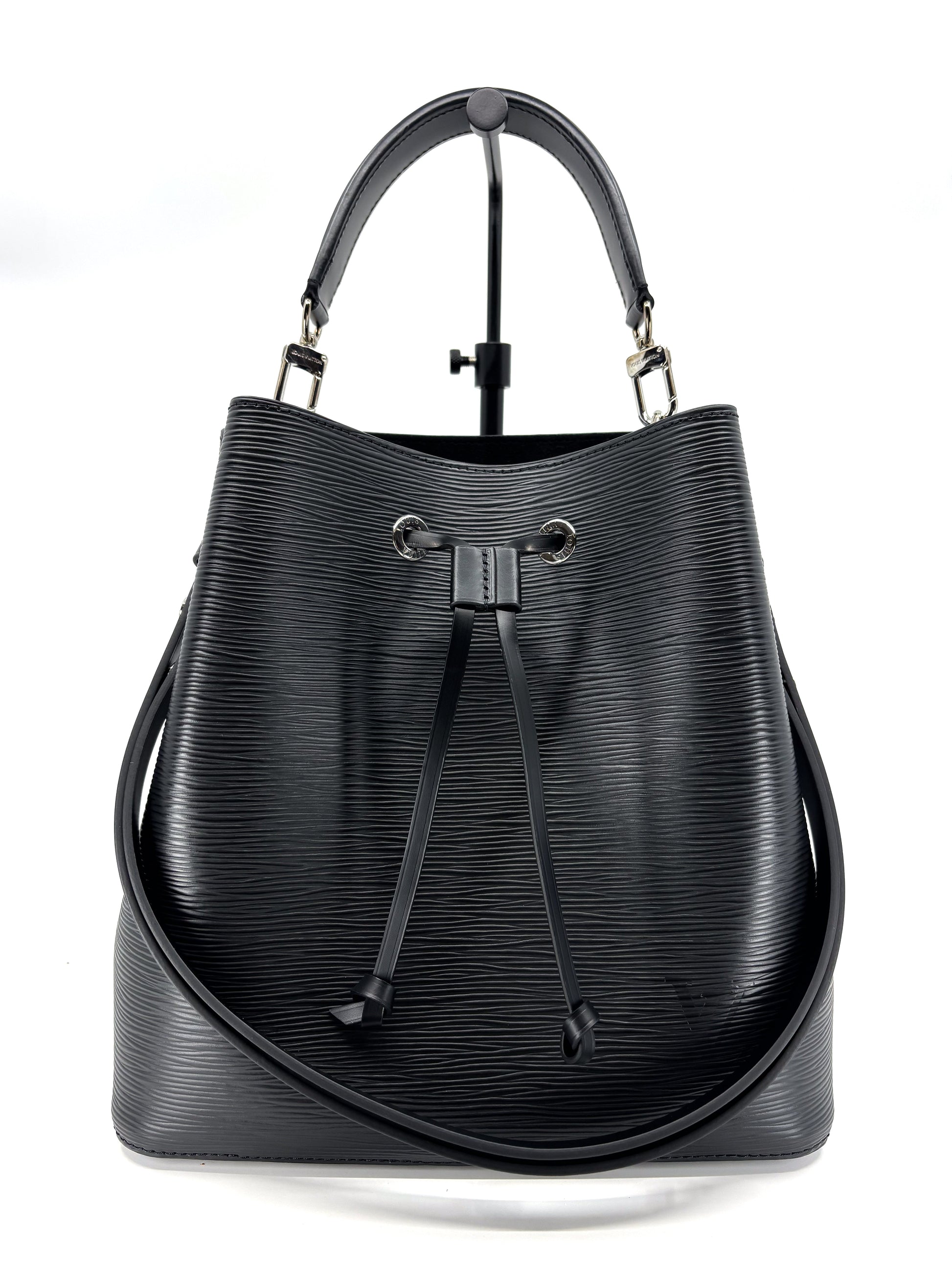 This is an pre-loved Louis Vuitton Epi Neonoe Black. Crafted from luxurious black Louis Vuitton epi leather, this shoulder bag boasts a classic bucket style design. Equipped with a removable shoulder strap, an optional top handle, and top cinch strap, it is finished with sleek silver hardware. The soft black microfiber interior includes a central zipper compartment.