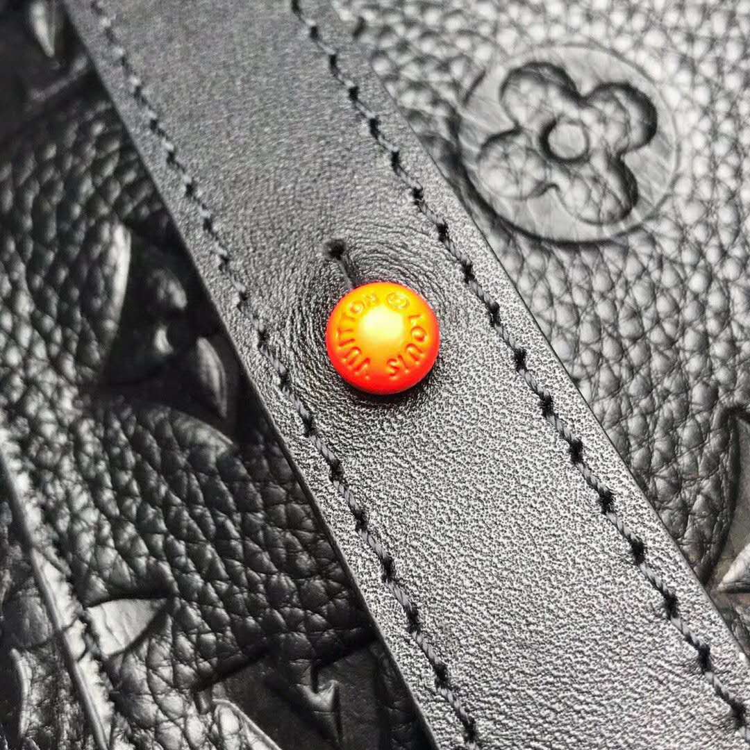 - Fashioned from Taurillon leather with an embossed Monogram motif, it is finished with black leather straps and matte-black hardware.