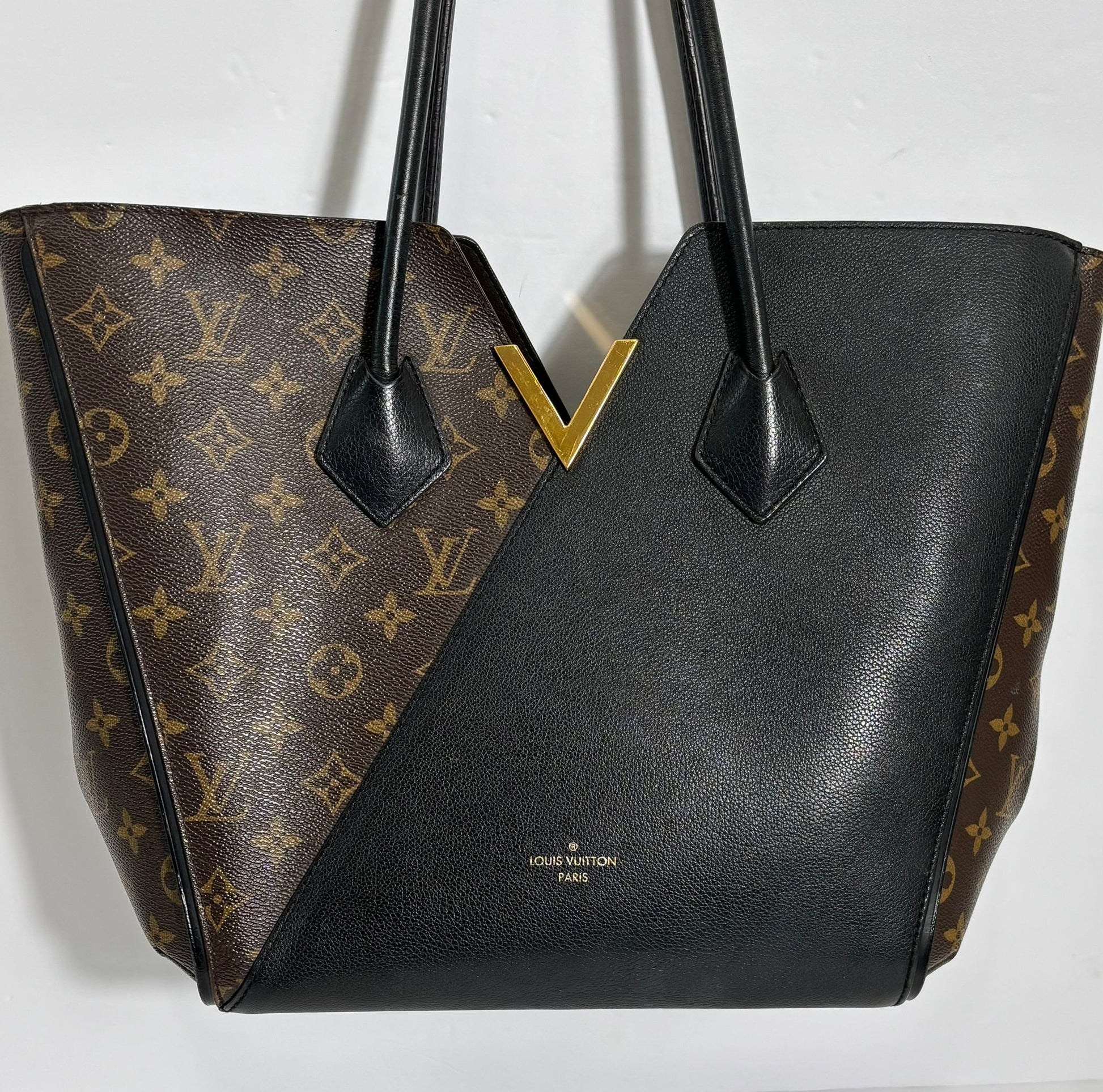 This Louis Vuitton tote from the 2016 Collection by Nicolas Ghesquière is a refined blend of modern design and iconic house codes. Crafted in black and brown Monogram coated canvas with brass hardware and rich leather trim, it features both rolled top handles and dual shoulder straps for versatile carry. A unique leather trim embellishment adds subtle sophistication, while the spacious interior—lined in Alcantara fabric—offers three interior pockets for effortless organization. The open-top design and protective feet at the base enhance both form and function. Made in France, this piece combines timeless appeal with practical luxury.