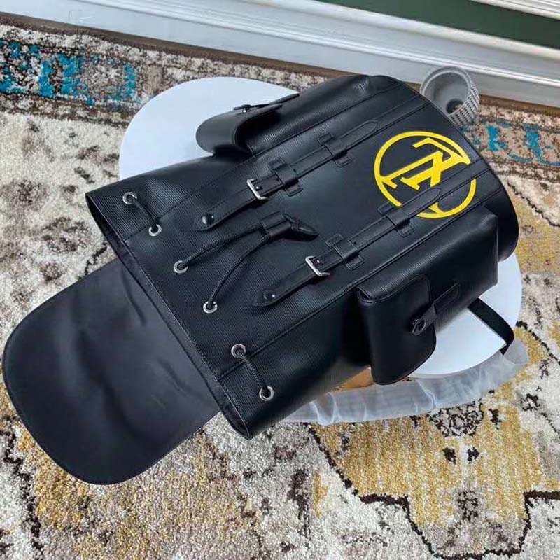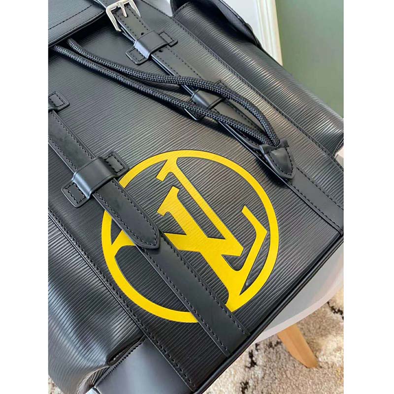 - For Fall 2019, the Louis Vuitton’s Christopher Backpack PM comes in a timeless black Epi leather, perked up with acid-green LV Initials.