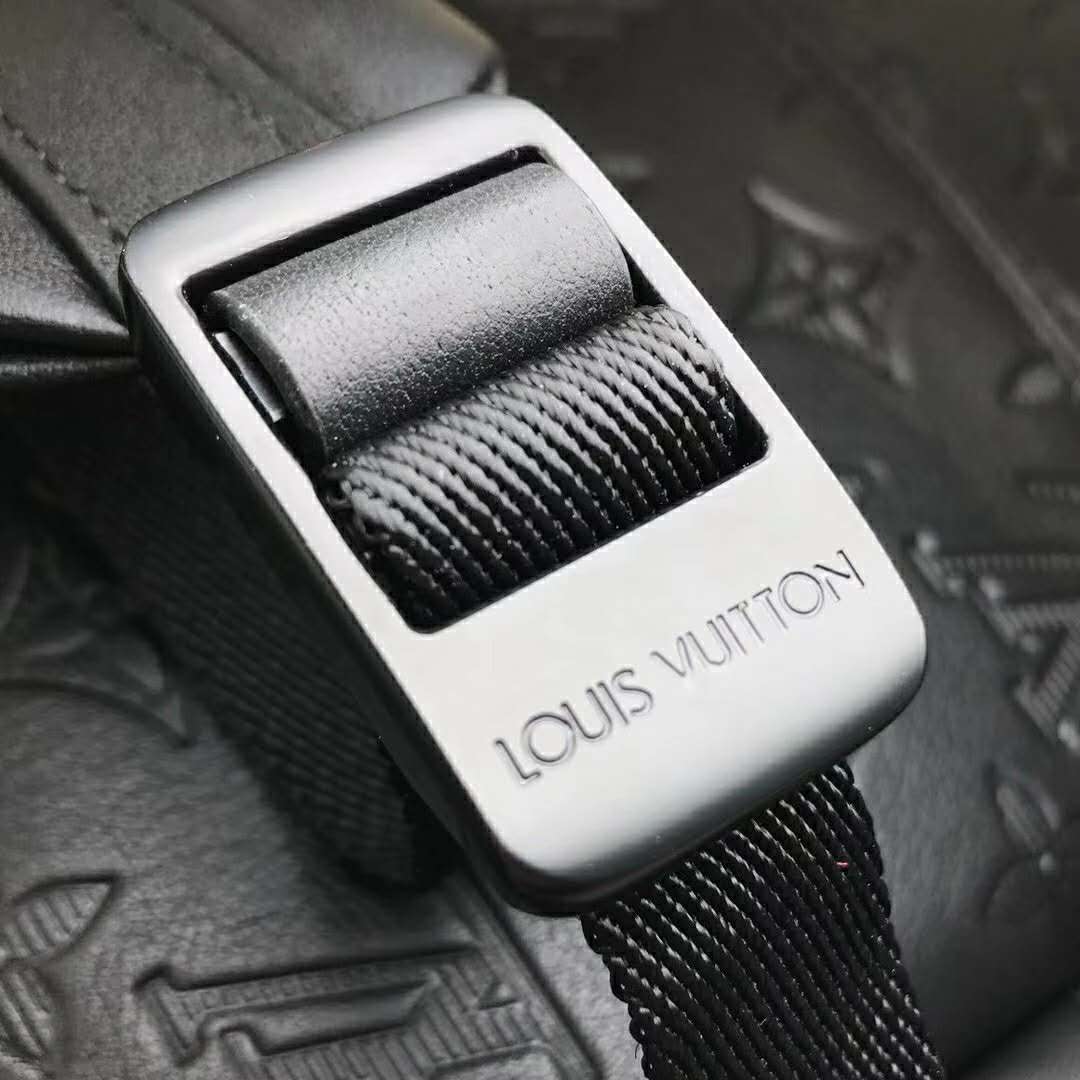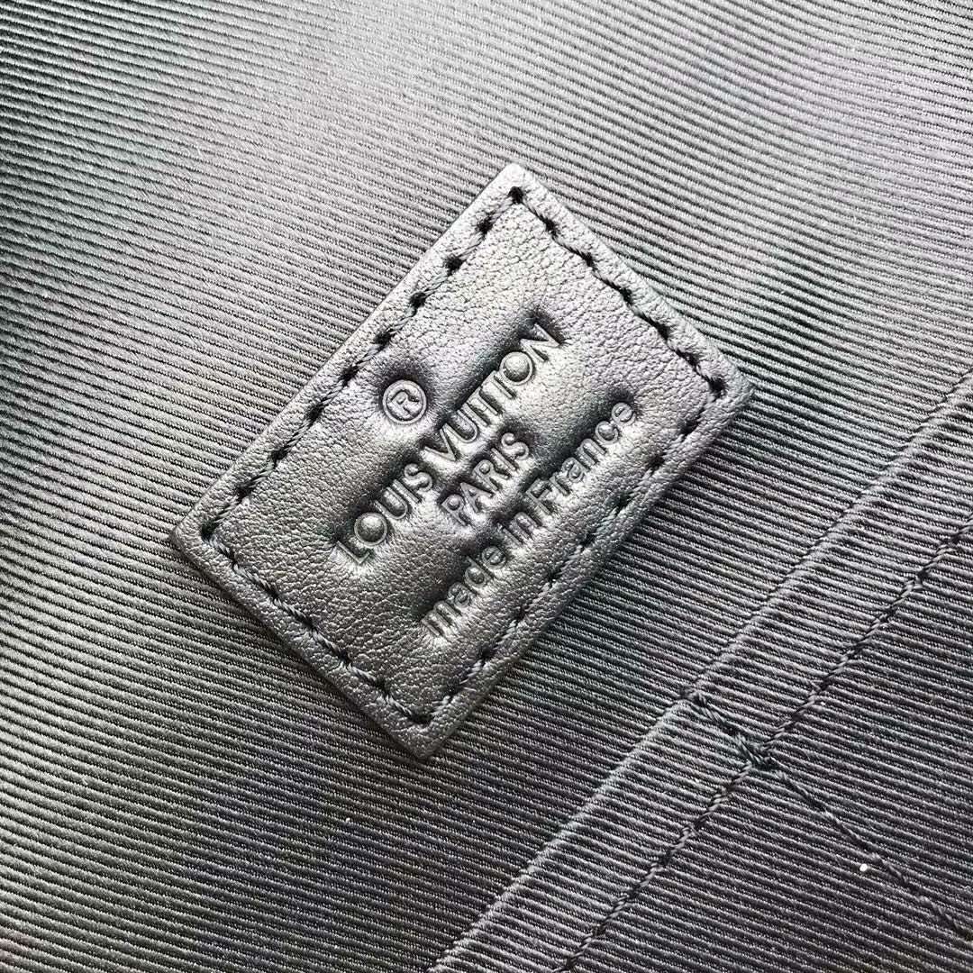 - Discreetly embossed with the Monogram pattern, the black calf leather perfectly complements the bag’s simple lines.