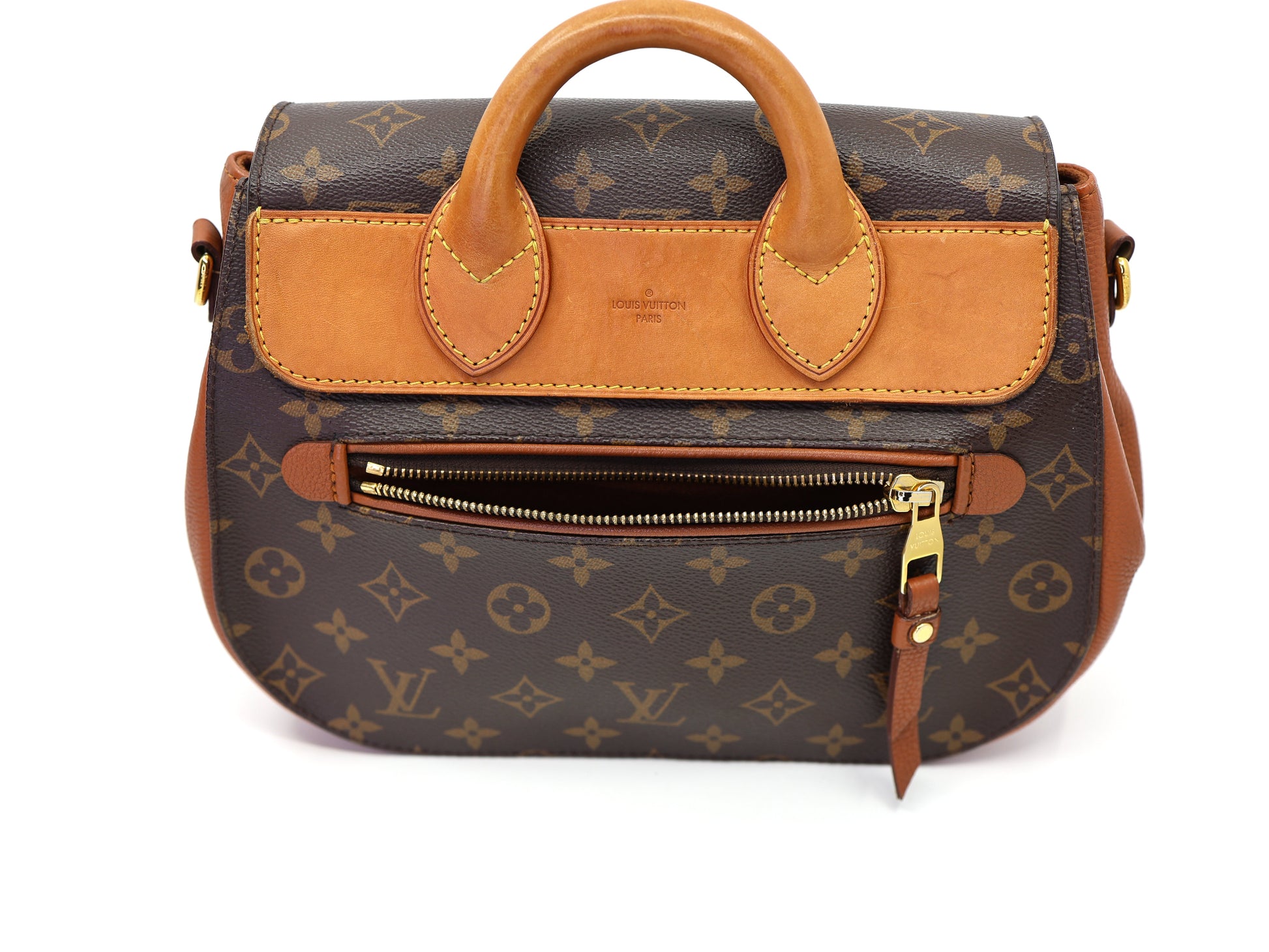 Crafted with traditional monogram toile canvas, the Louis Vuitton Monogram Eden MM in Camel boasts a unique blend of rich calfskin and natural vachetta leather. Polished brass signature hardware can be found throughout, including the steamer-inspired top handle, coordinating leather base, frontal press lock, and strap links. The cocoa microfiber interior features both a zipper and flat pockets, making this versatile handbag a luxurious and feminine choice from Louis Vuitton.