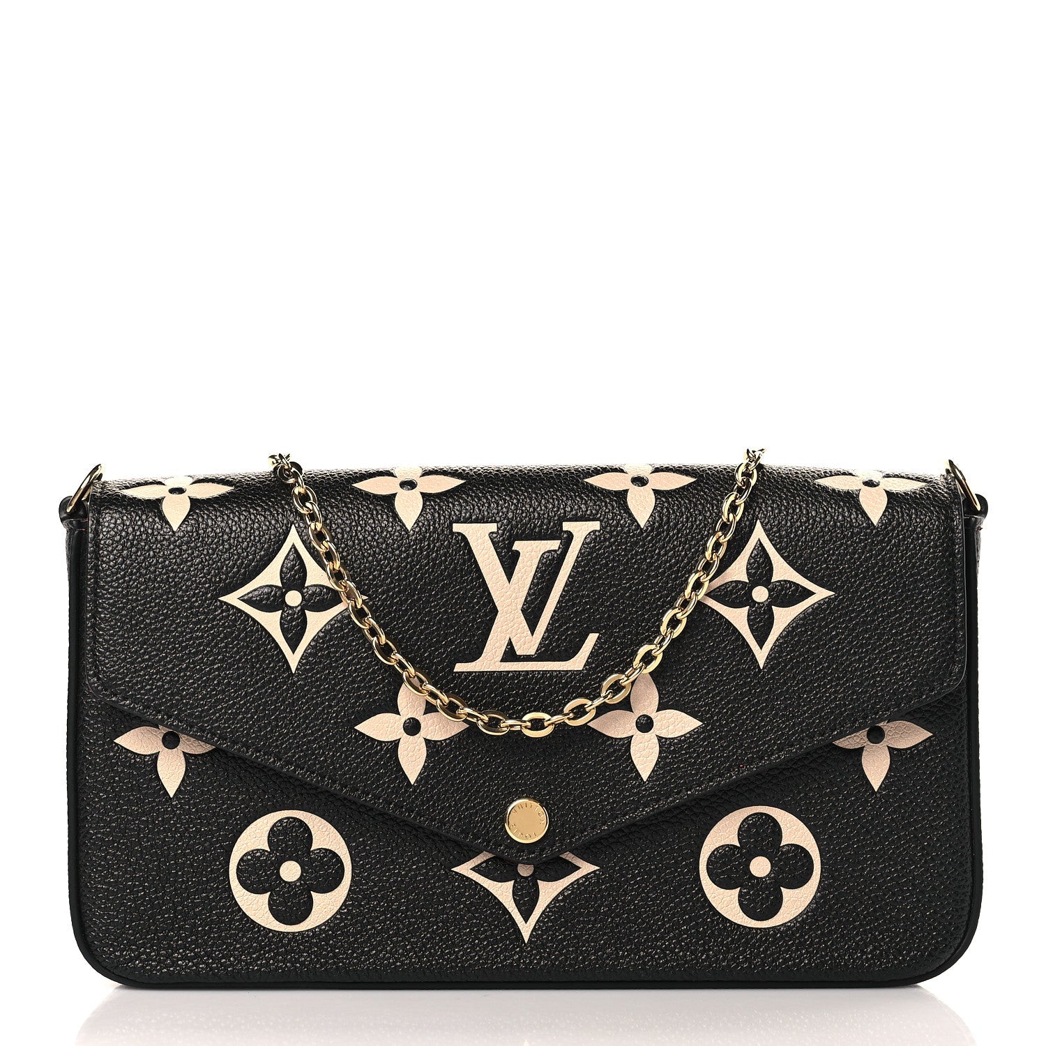 The Félicie Pochette is crafted from supple Monogram Empreinte leather, embossed with Louis Vuitton's iconic Monogram pattern. The bicolor palette brings added refinement to this elegant and versatile design, which features a removable chain, enabling it to be carried on the shoulder or as a clutch, as well as two removable pockets.