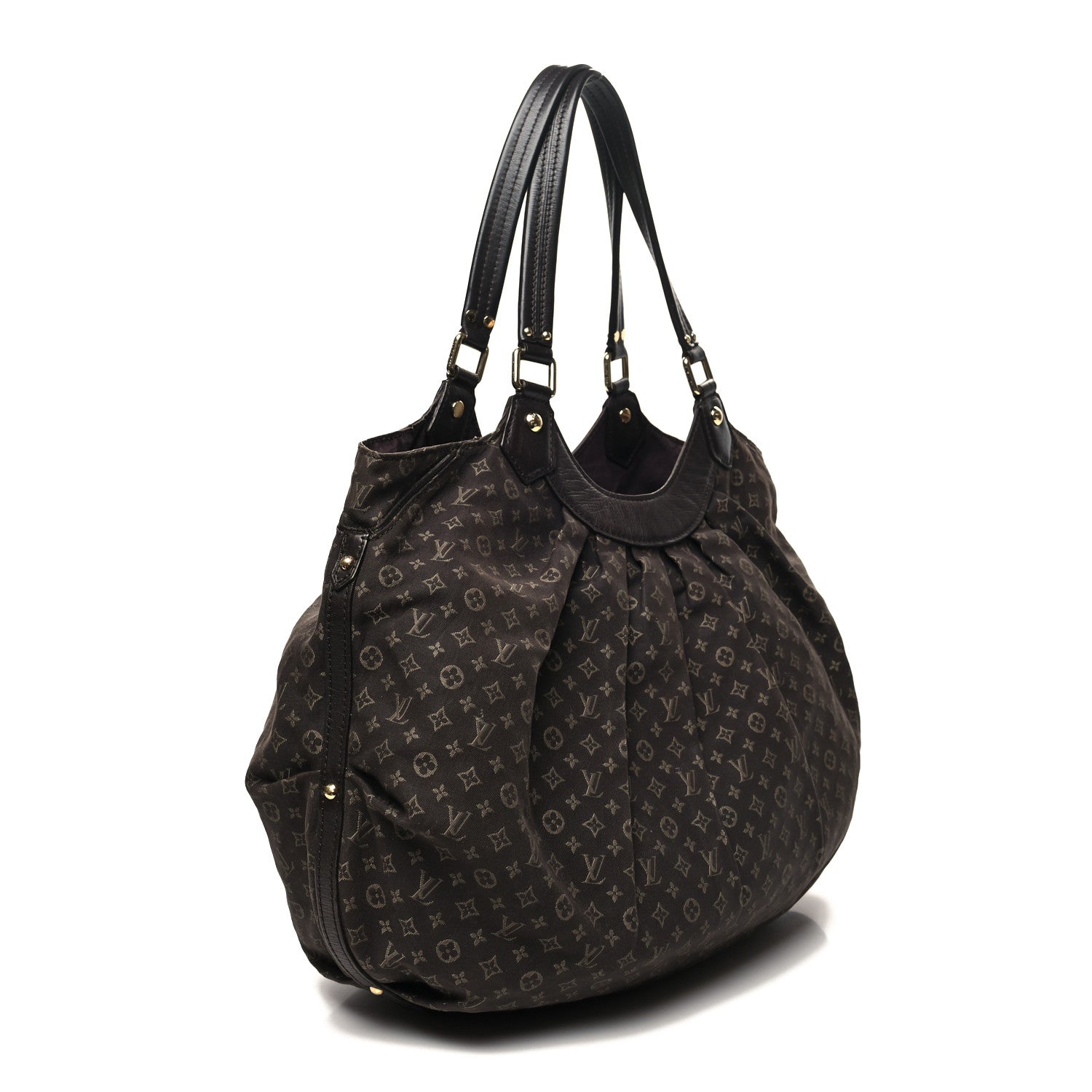This Chic Shoulder Hobo Bag is Crafted of Louis Vuitton Mini Monogram pleated canvas with dark brown leather trim.