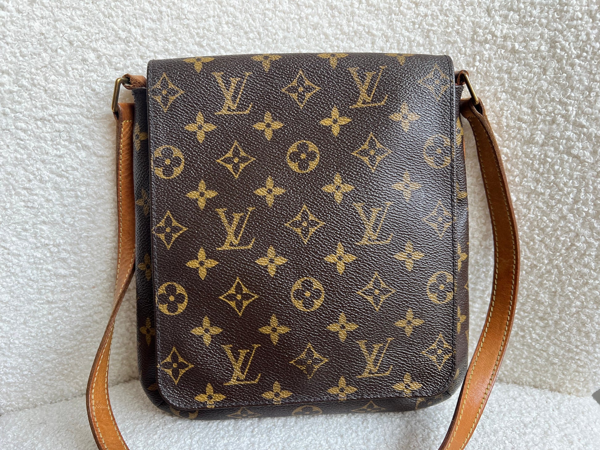 Louis Vuitton Musette Salsa PM in monogram canvas. This is the version with the longer strap (ie can be worn cross body). In the iconic monogram canvas, this slimline shoulder bag is ideal for those who prefer smaller, lightweight bags. Now discontinued, a great example of vintage quality LV. Fold over flap closure. Perfect "starter" designer bag with a lower price tag than some of Louis Vuitton's other models.