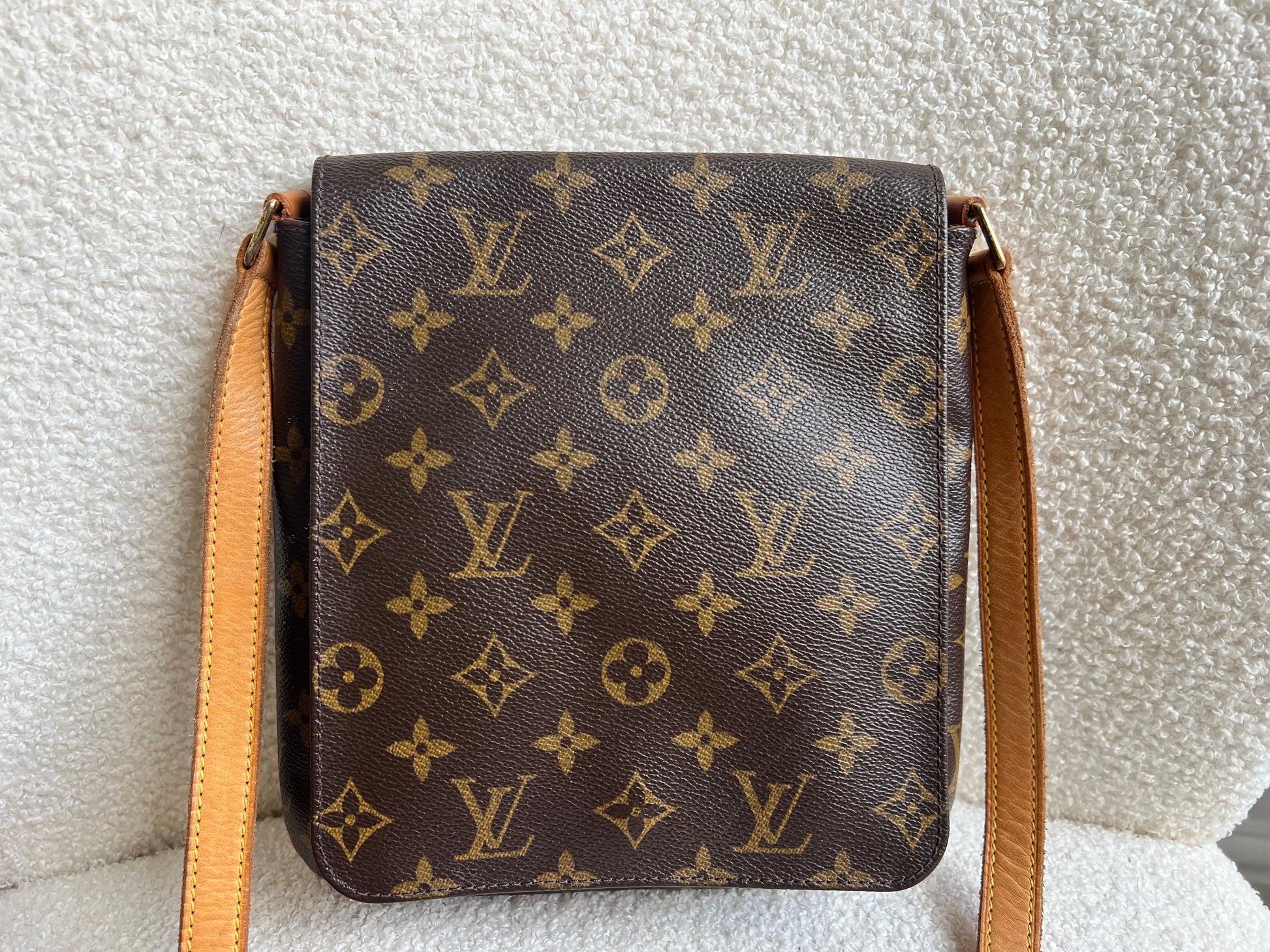 Louis Vuitton Musette Salsa PM in monogram canvas. This is the version with the longer strap (ie can be worn cross body). In the iconic monogram canvas, this slimline shoulder bag is ideal for those who prefer smaller, lightweight bags. Now discontinued, a great example of vintage quality LV. Fold over flap closure. Perfect "starter" designer bag with a lower price tag than some of Louis Vuitton's other models.