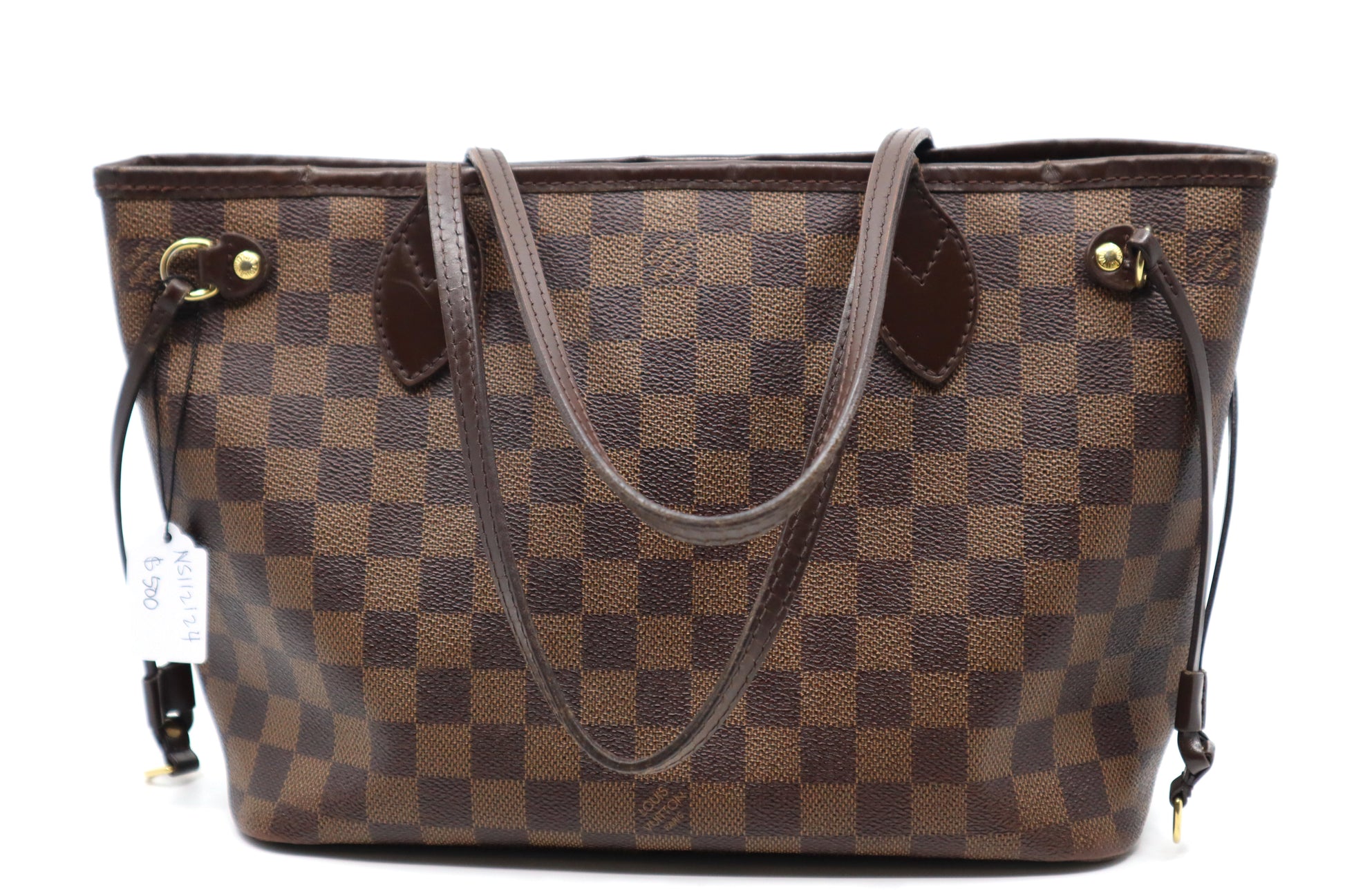 This is an preloved Louis Vuitton Neverfull PM in Damier Ebene.
