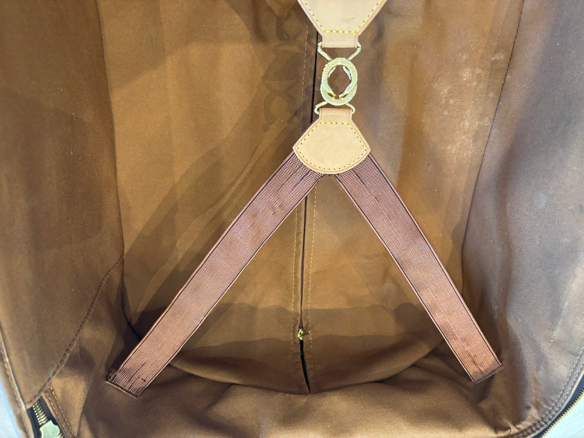- Good pre-loved condition: leather trim has discolouration and scuffing consistent with age.