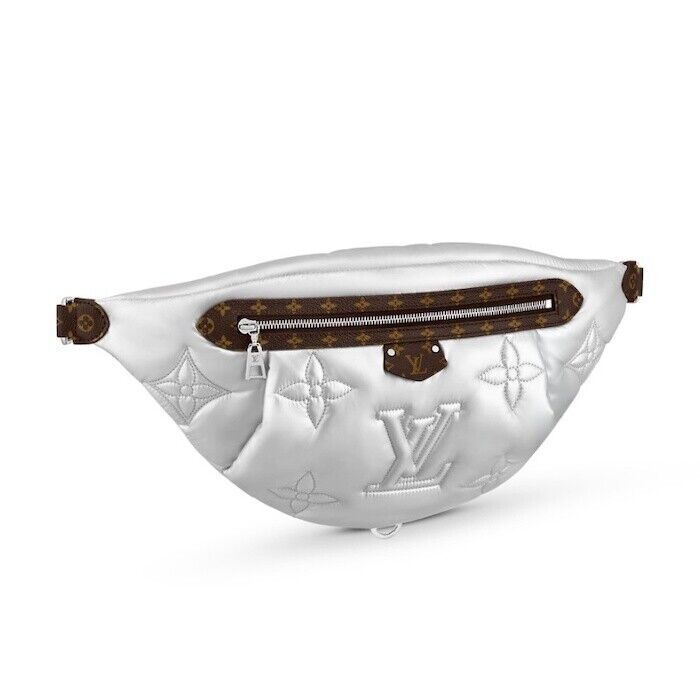 This Stunning Limited Edition Bumbag is Crafted of Stitched Monogram on a Metallic Silver nylon textile.