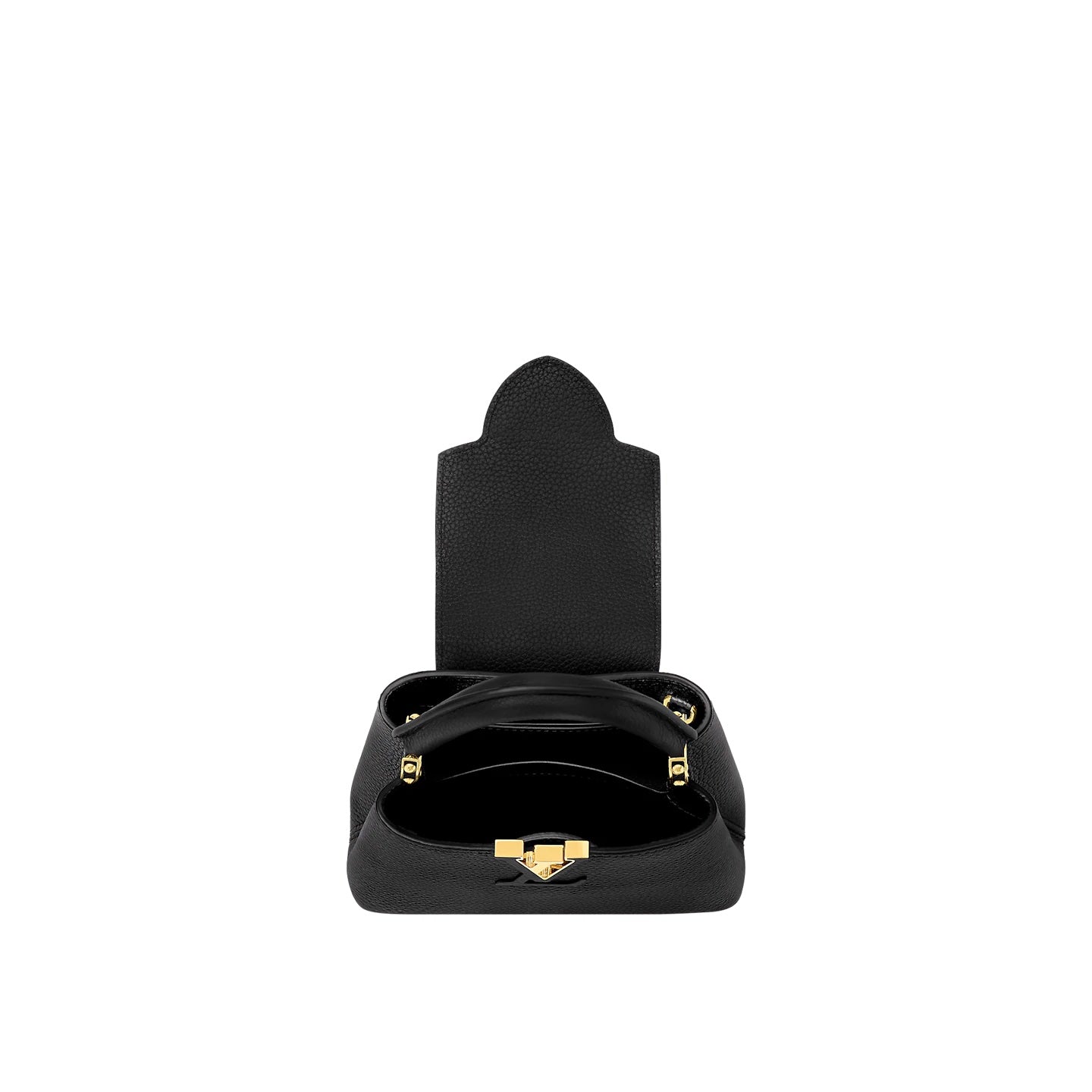 The refined Capucines Mini handbag looks stunningly chic in rich black Taurillon leather finished with golden handle rings and the emblematic LV Initials. This smaller version of the classic Capucines is a pleasure to carry over the shoulder or cross-body thanks to its wide removable strap.