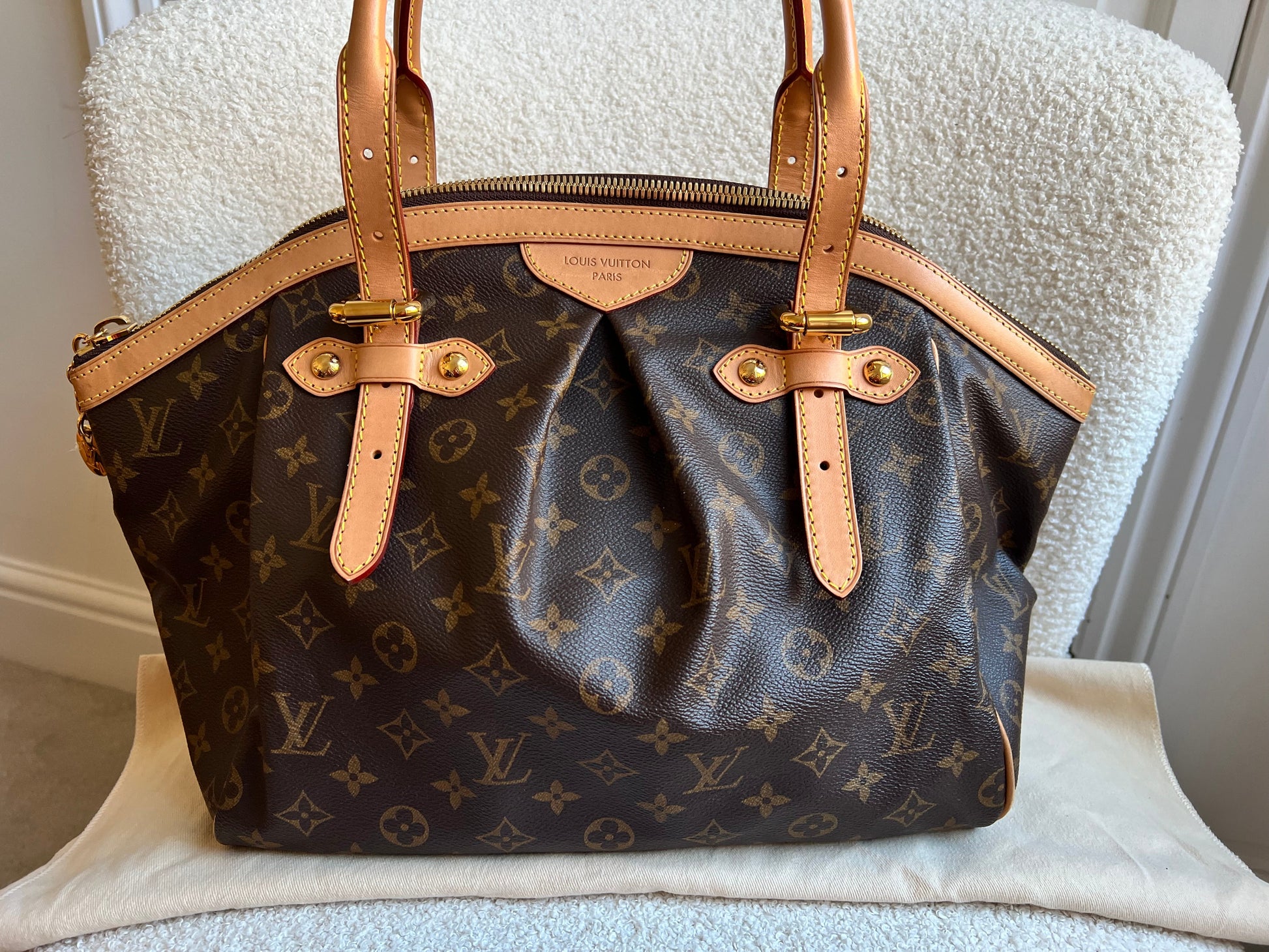Louis Vuitton Tivoli GM in Monogram Canvas with gold hardware. This stylish tote is one of the original LV bags introduced in around 1890. The larger of the two Tivoli styles, features gold tone zipper, adjustable top handles and pleated detail. Ideal for those who prefer larger day to day bags and can be worn comfortably over the shoulder or in the crook of the arm. 2013 year.