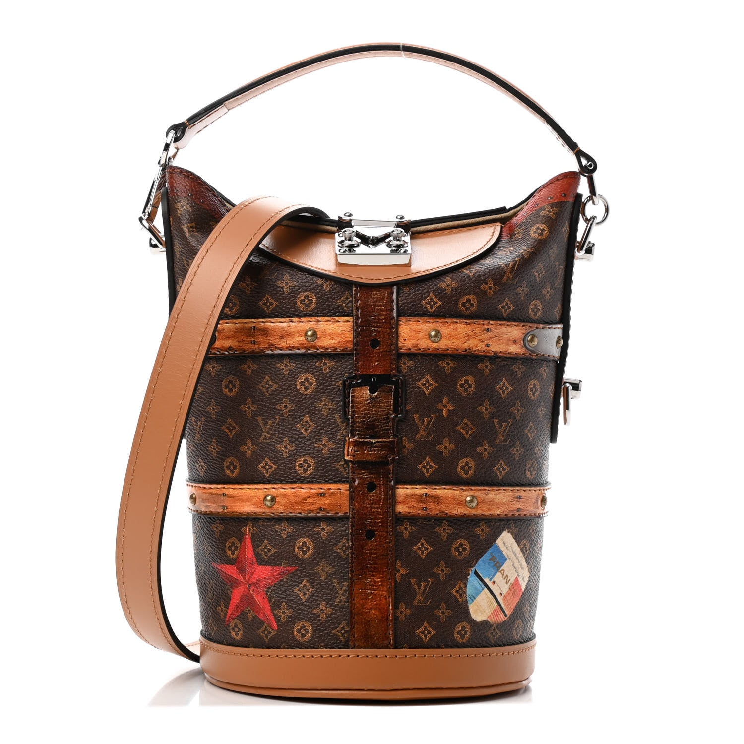 - Crafted from coated monogram canvas with intricate trunk-style detailing.