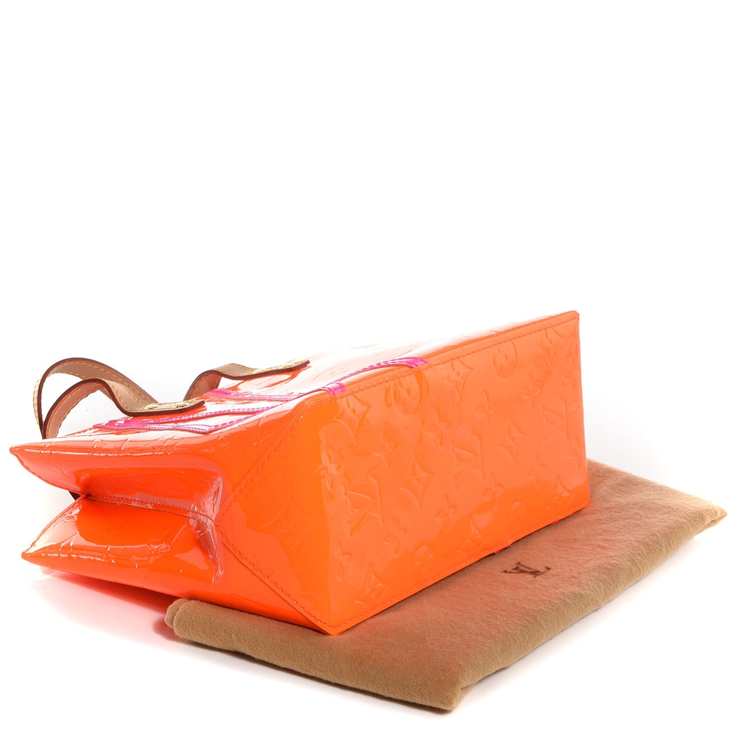 This Rare and Vibrant Louis Vuitton Reade PM Tote is part of the Exclusive Robert Wilson Collaboration. Crafted in high-gloss Vernis patent leather, the bag features a striking fluorescent pink monogram graphic—a bold reinterpretation of the classic LV monogram print. The structured silhouette is complemented by Natural vachetta leather top handles and polished gold-tone hardware.
