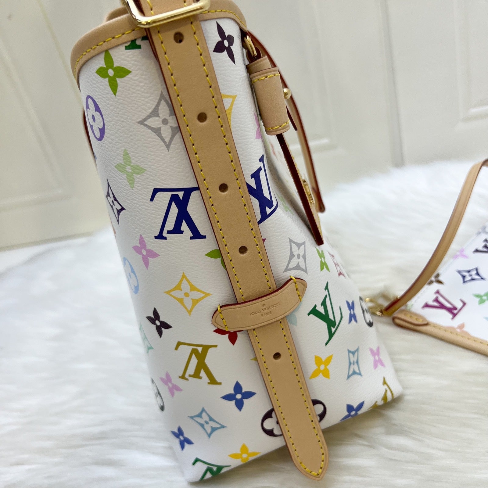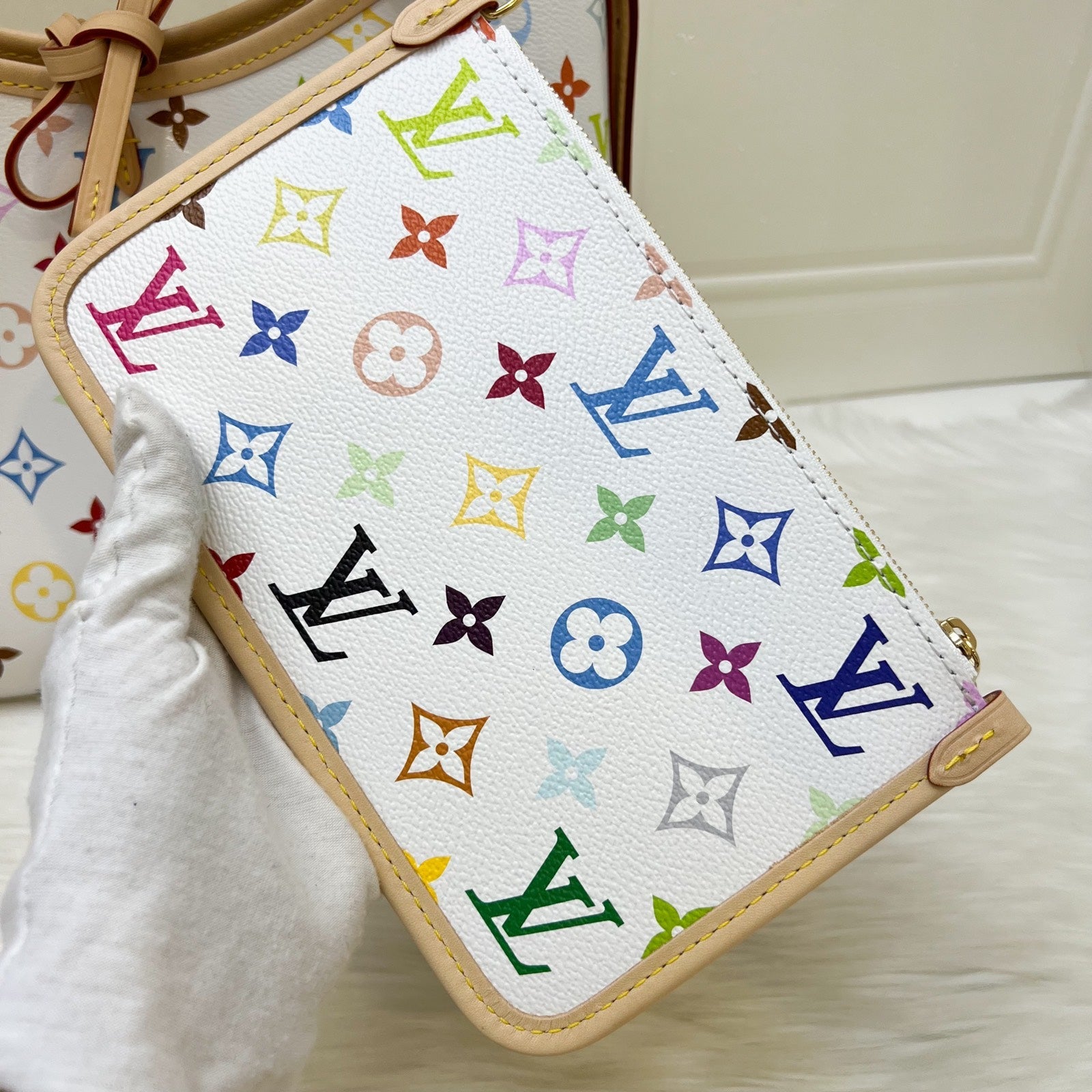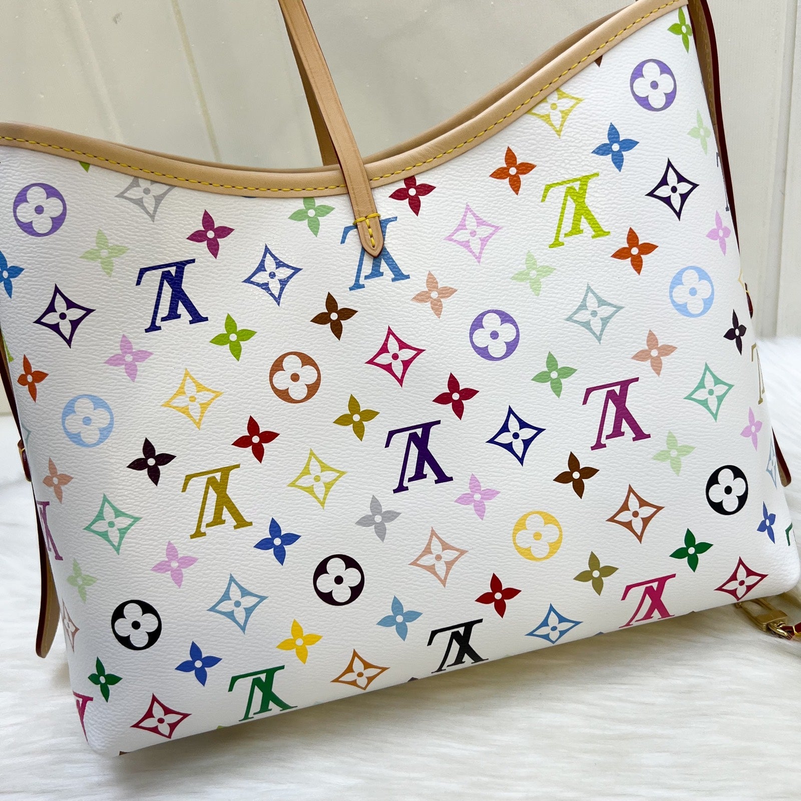 LV Louis Vuitton x Takashi Murakami Carryall PM in Multicolore Blanc Monogram Canvas and GHW