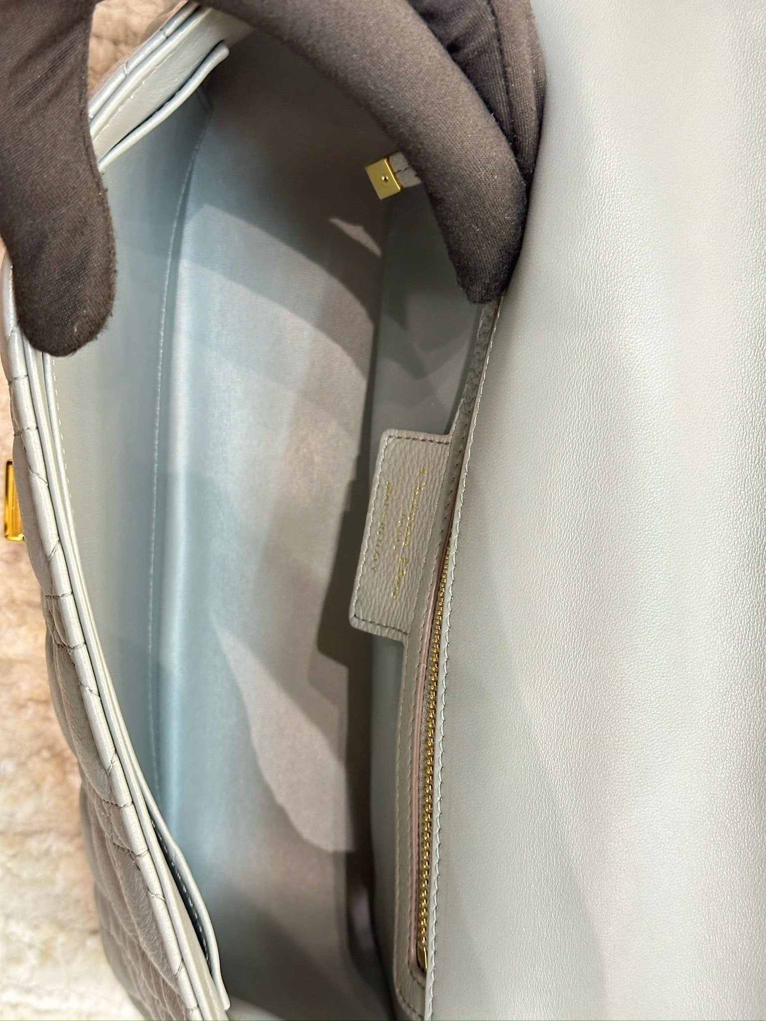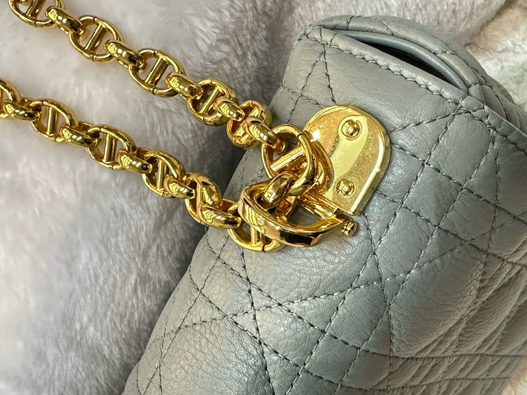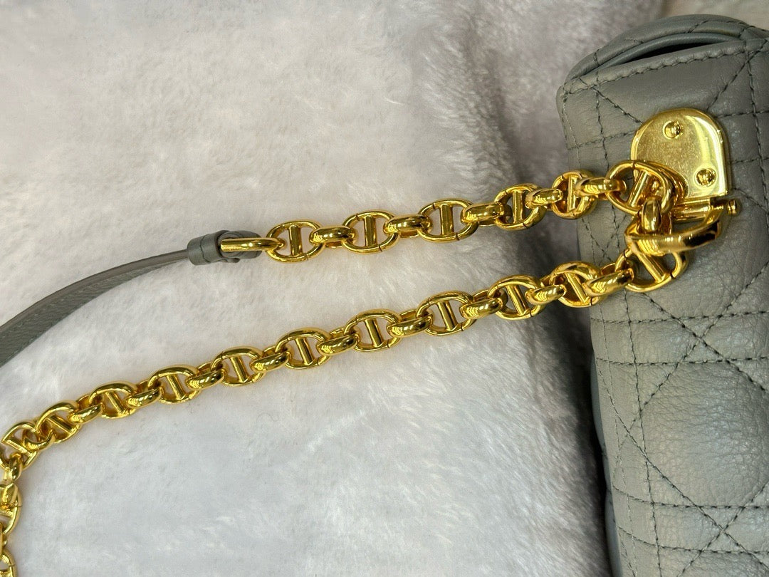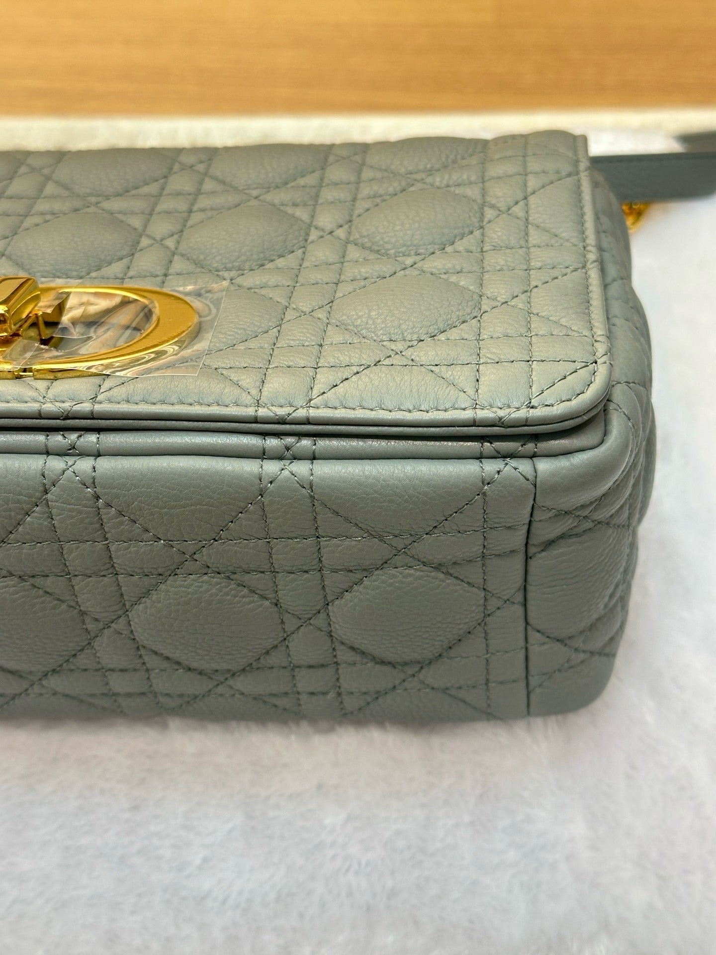 Medium Dior Calfskin Caro Bag Stone Gray Supple Cannage