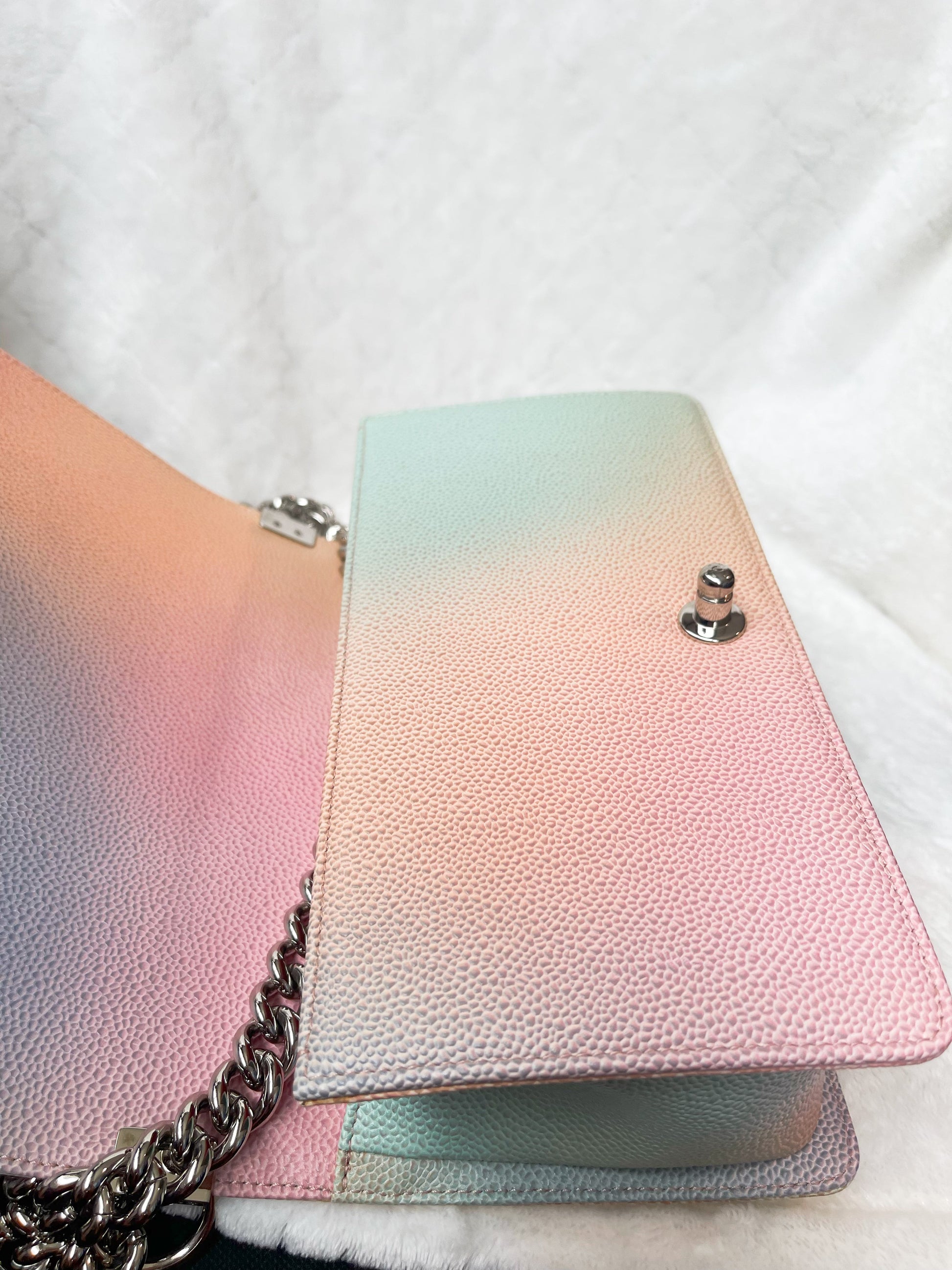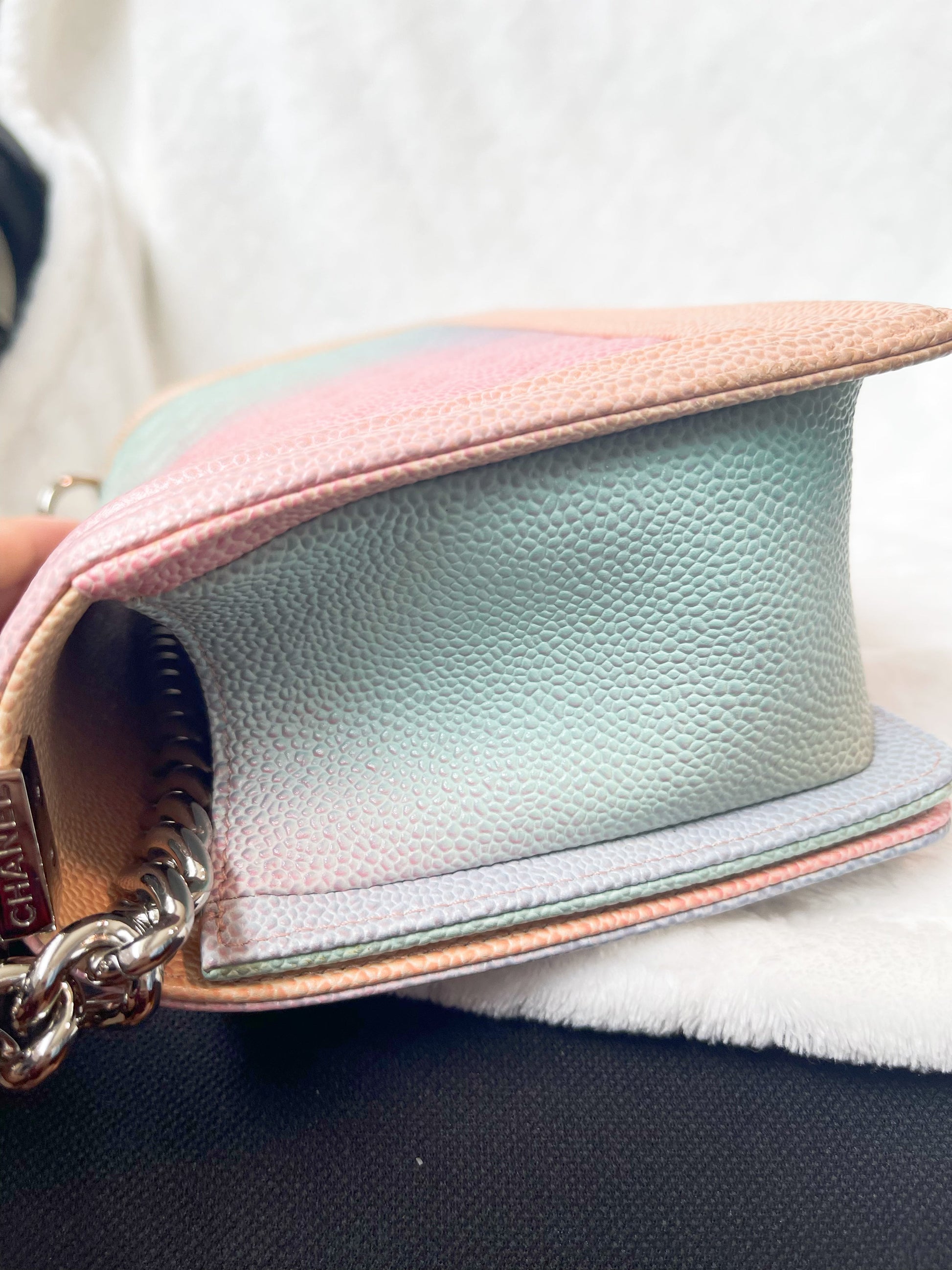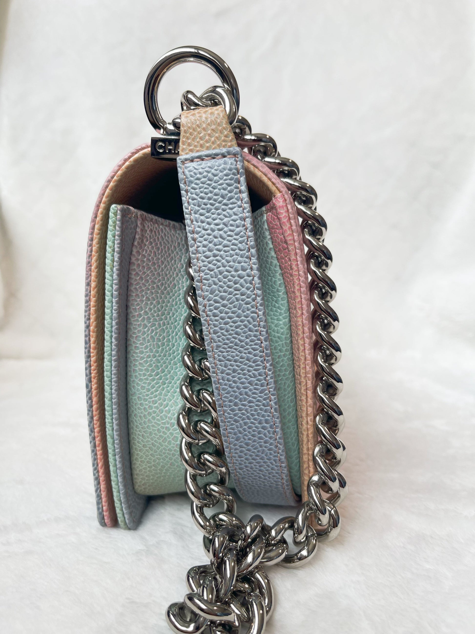 Chanel Medium Rainbow Boy Flap Caviar Leather Shoulder Bag Multicolor