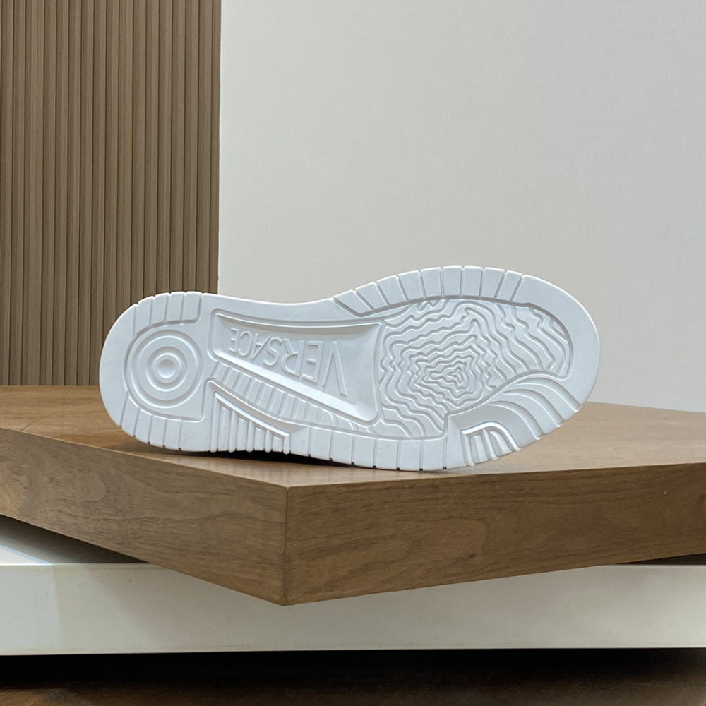 Elevate your style with the statement-making Greca Odissea sneakers from Versace. Designed with a bold, chunky silhouette, they feature a dynamic rubber sole accented by a stitched Greca motif. The two-tone calf leather upper, lace-up closure, and signature branding on the heel counter, tongue, and sole complete the look with unmistakable luxury.