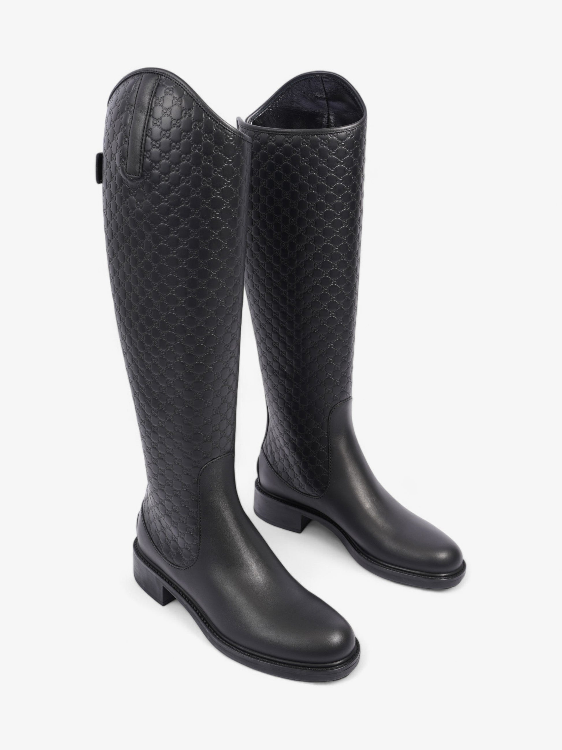 Gucci Microguccissima Riding Boots Black Leather EU 37 UK 4