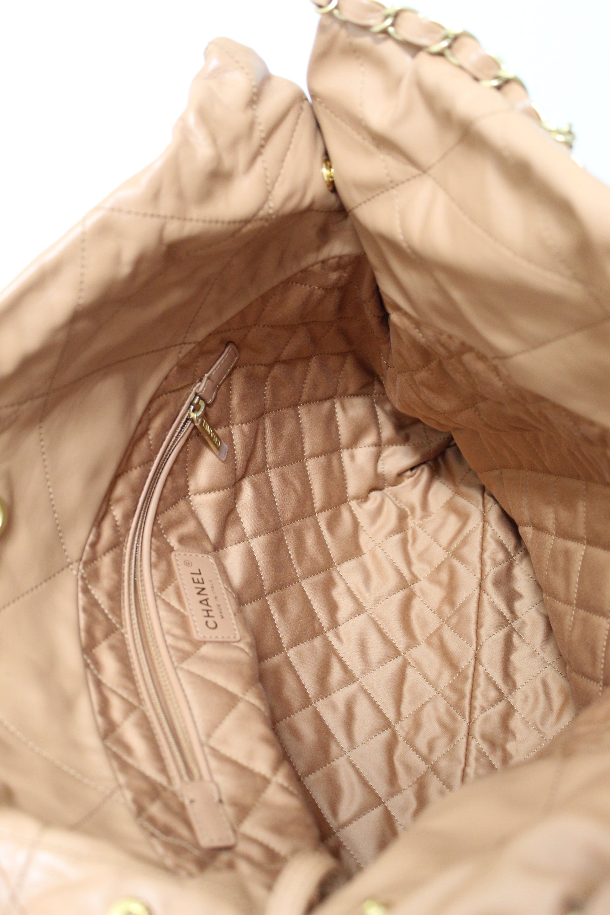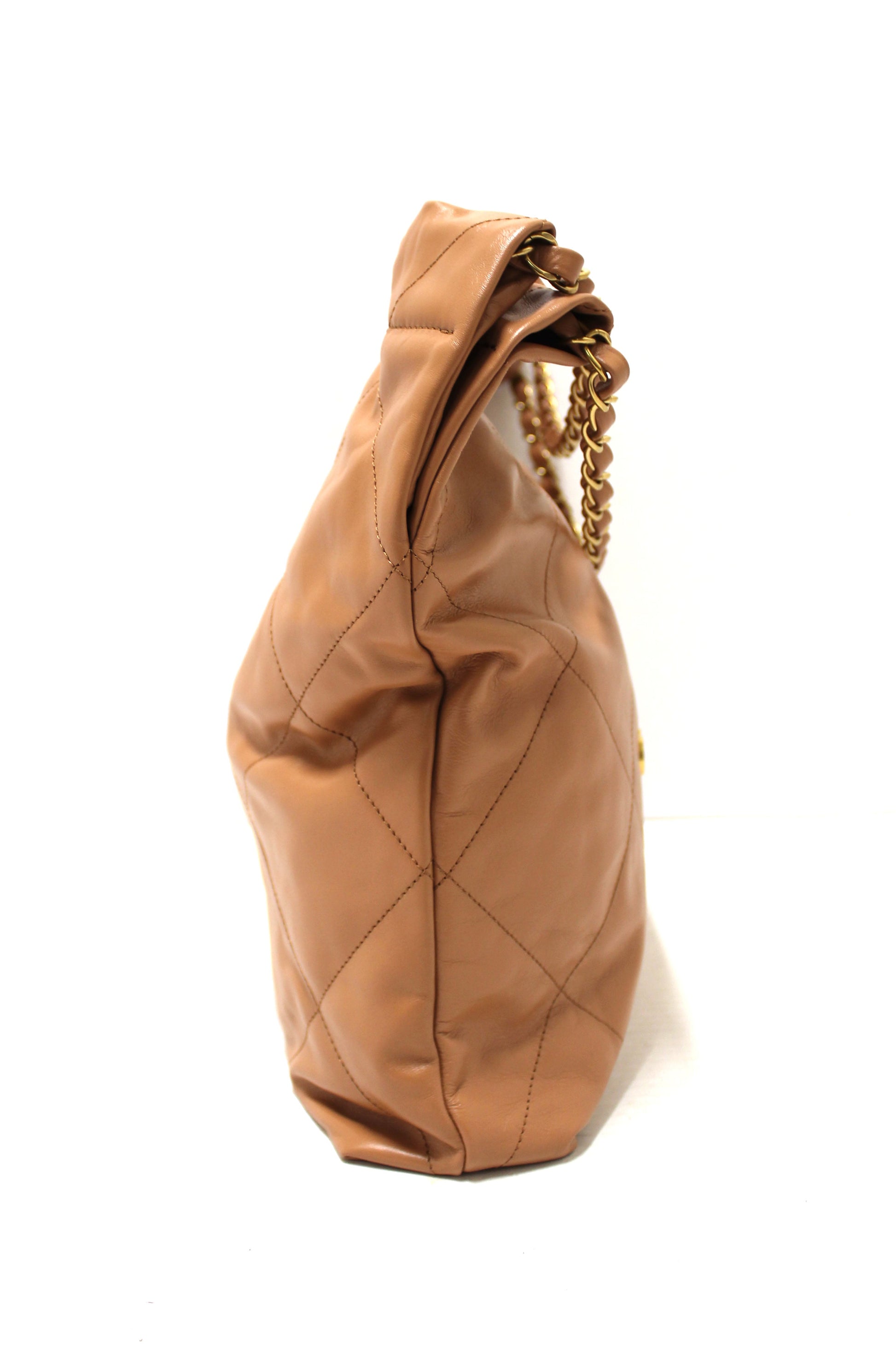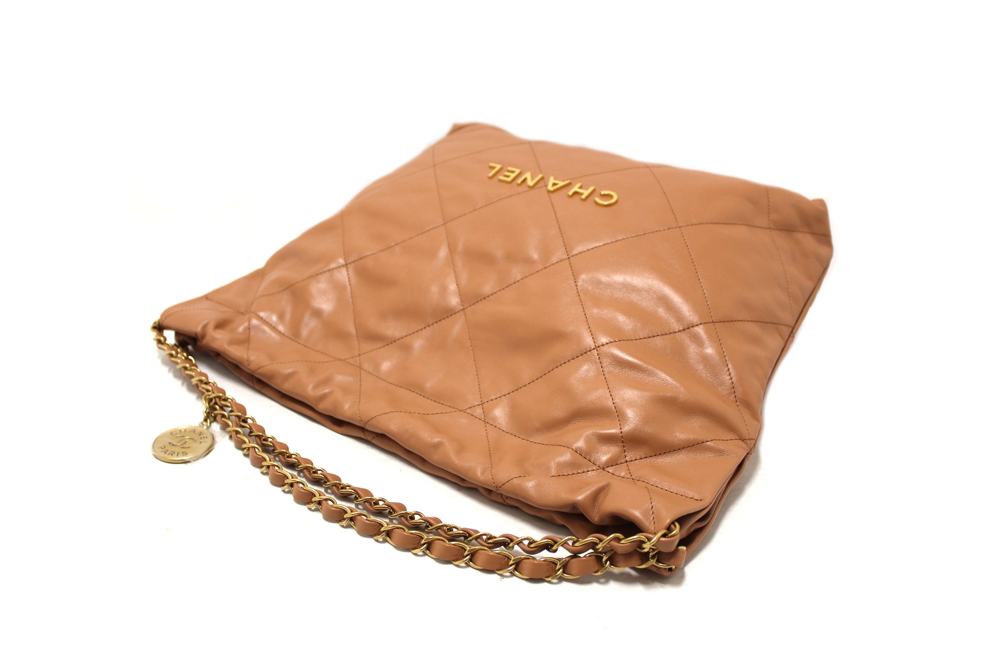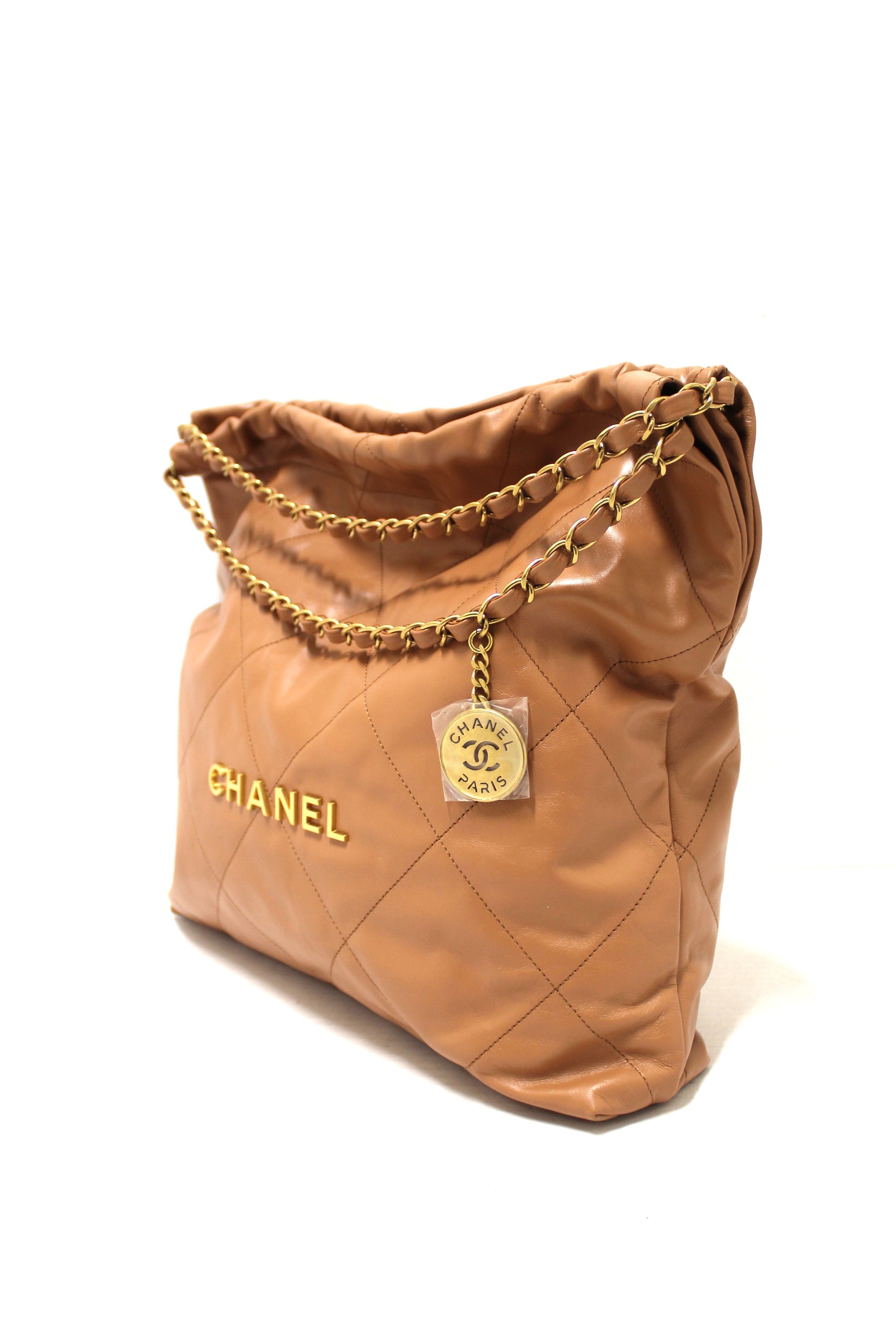 New Chanel 22 Camel Shiny Calfskin Leather Shoulder Tote Bag