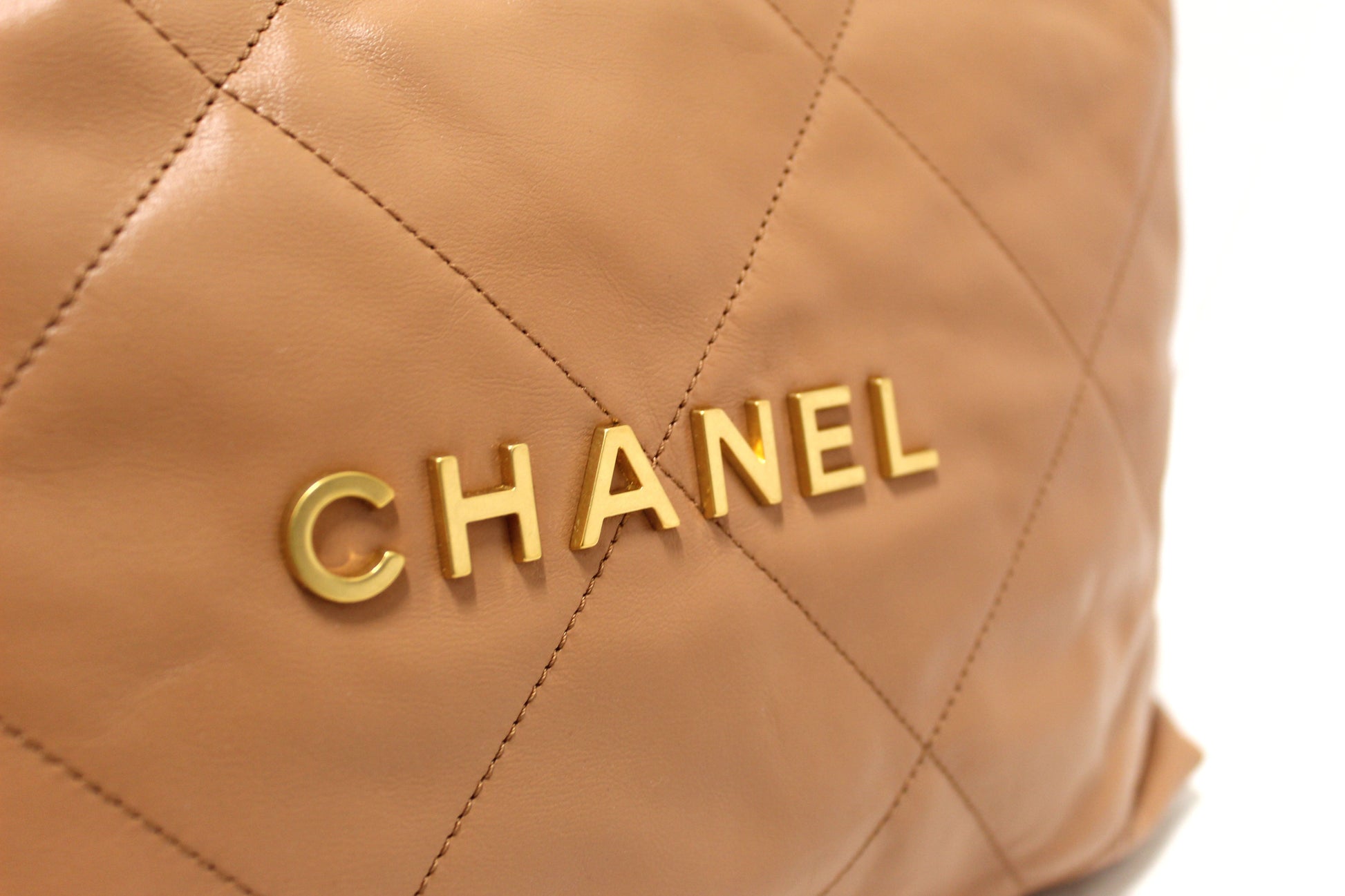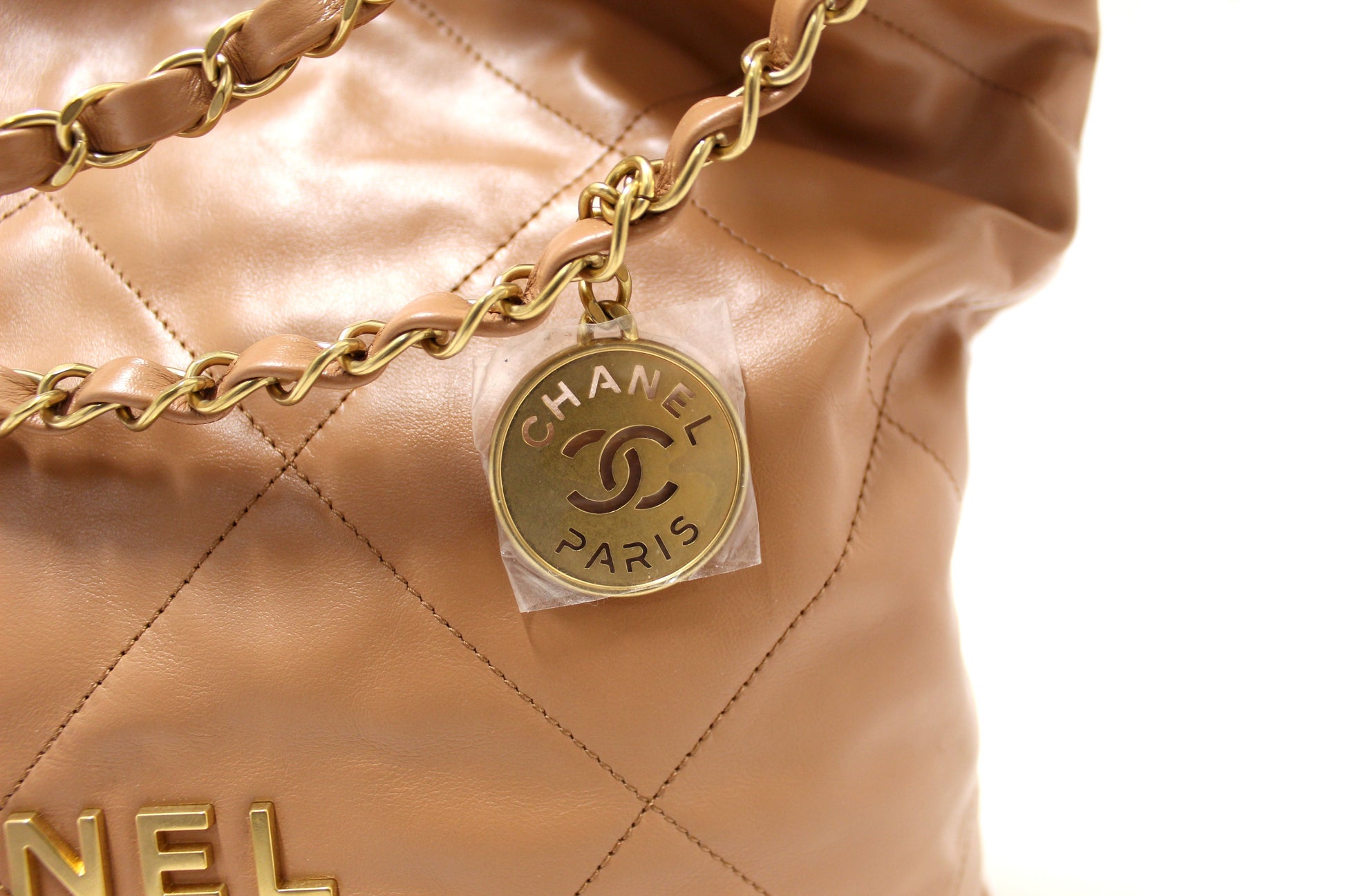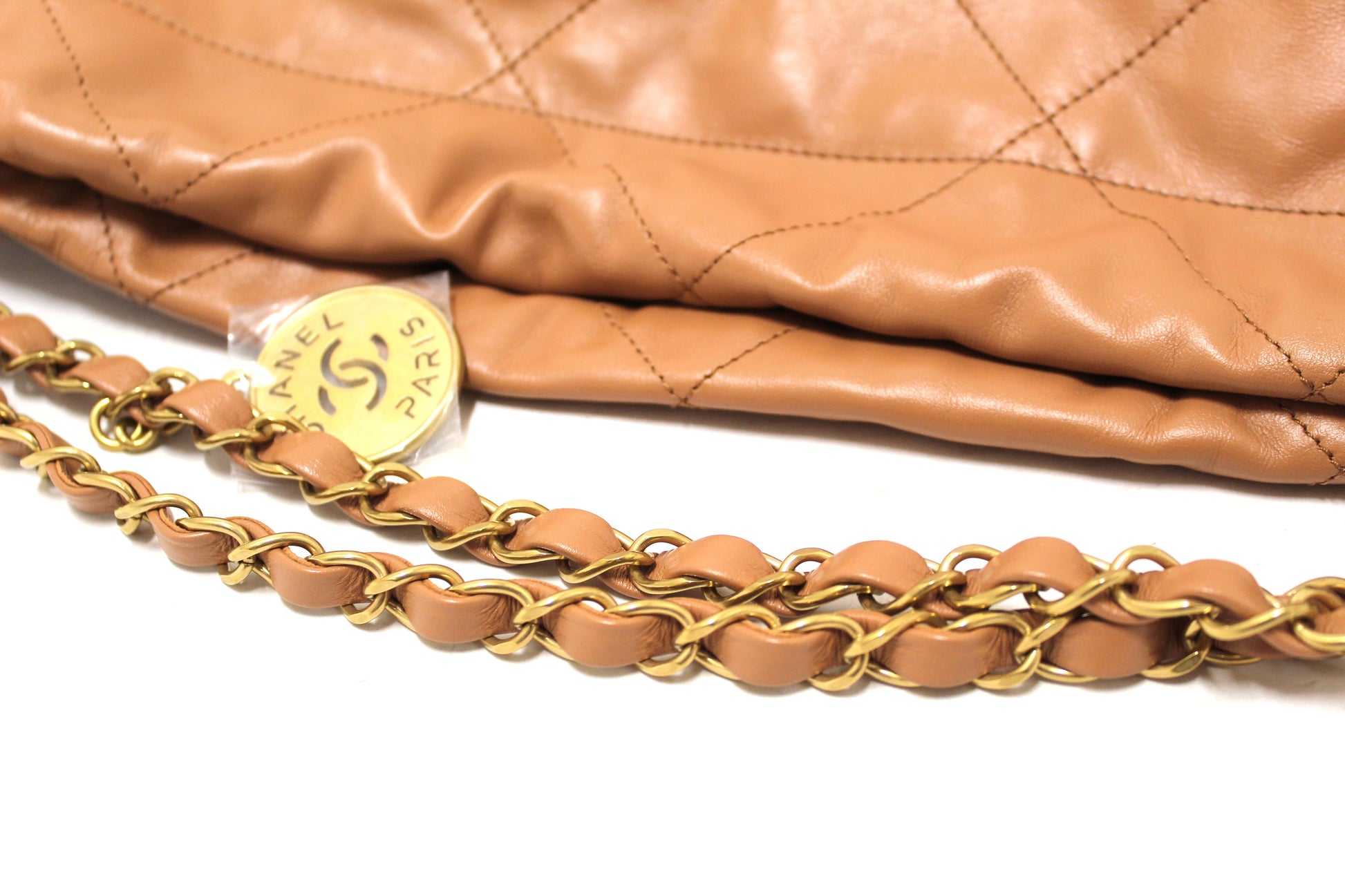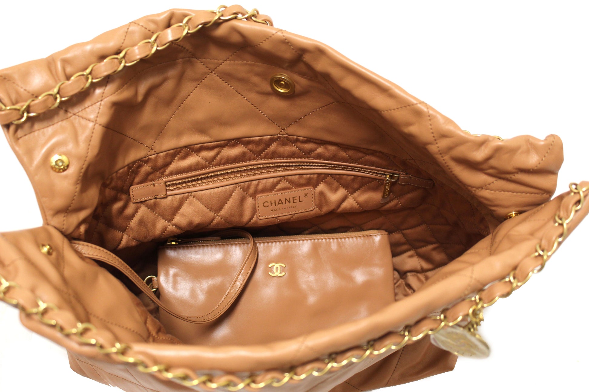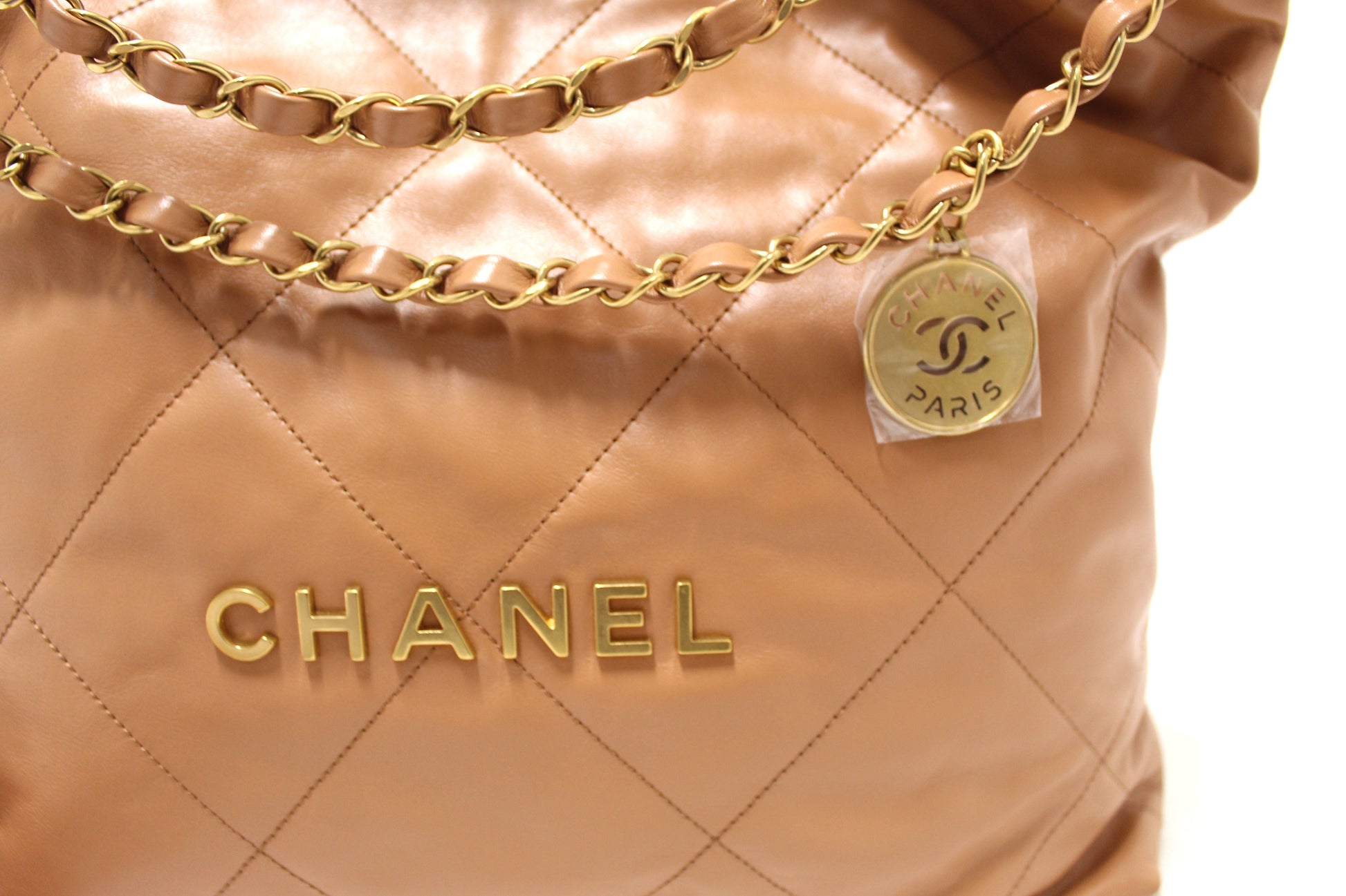 New Chanel 22 Camel Shiny Calfskin Leather Shoulder Tote Bag