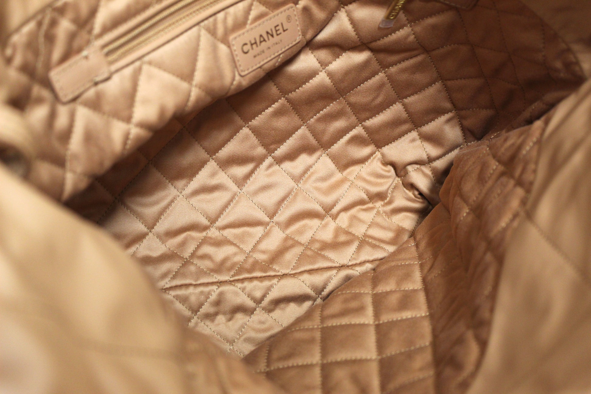 Camel quilted textile interior lining