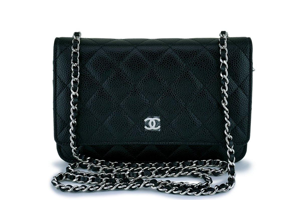 New Chanel Black Caviar Classic Wallet on Chain WOC Flap Bag SHW