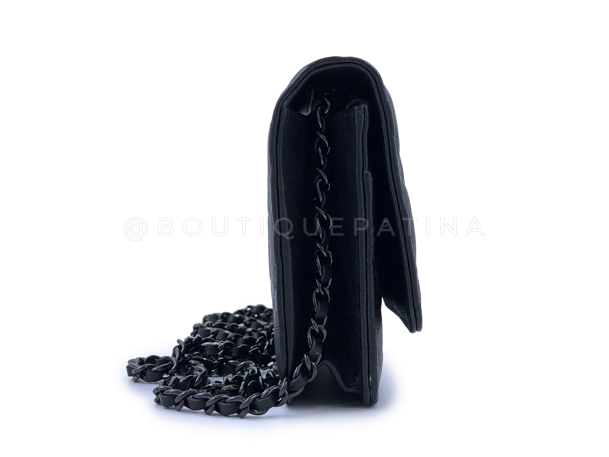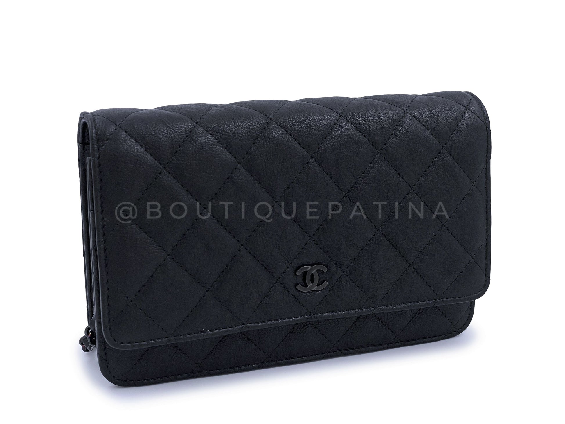 NIB 17S Chanel So Black Classic WOC Wallet on Chain Flap Bag Crumpled Calfskin