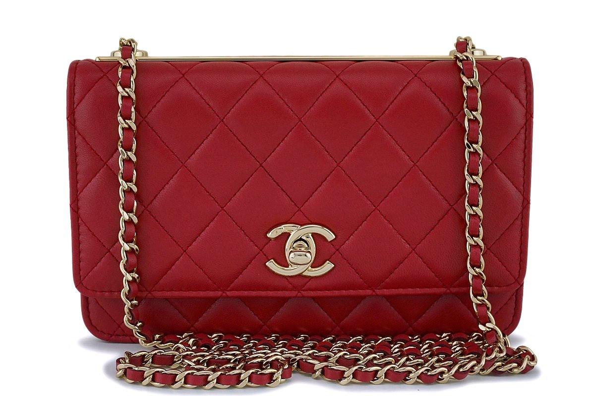 NIB 18K Chanel Red Trendy CC Wallet on Chain WOC Mini Flap Bag GHW