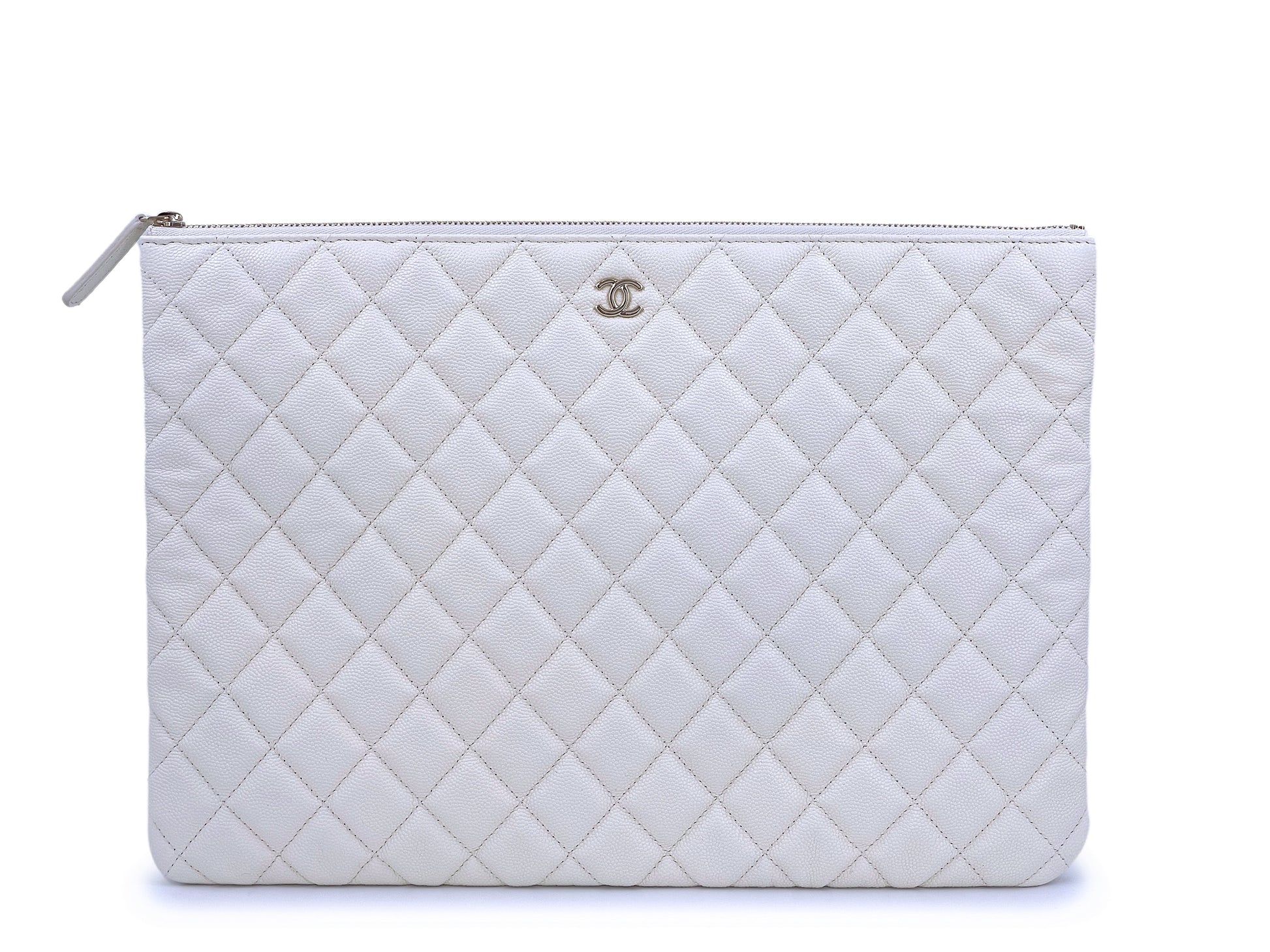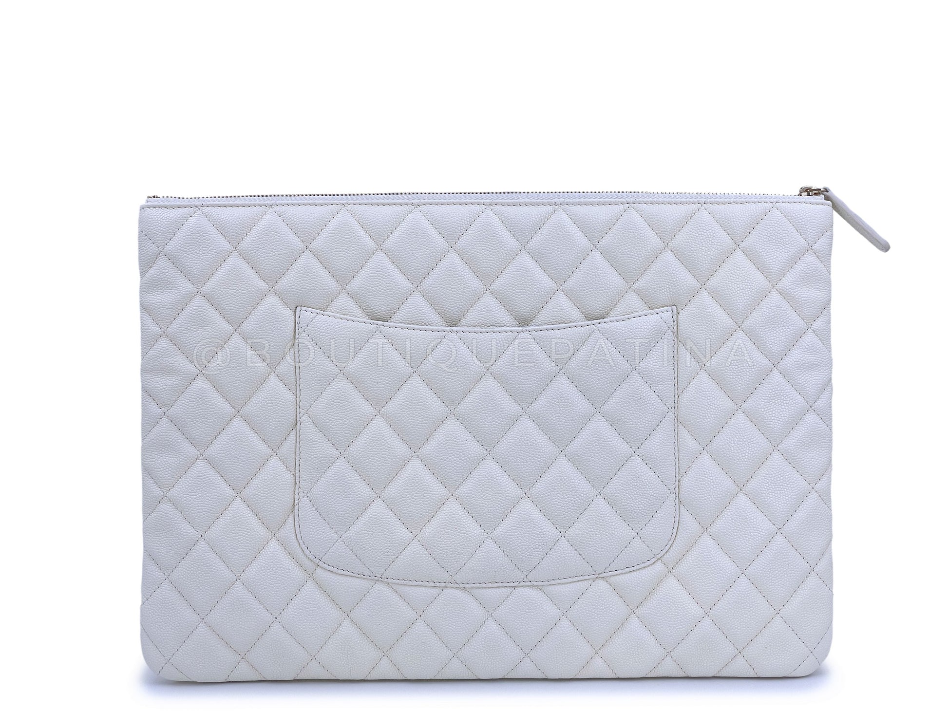 NIB 19C Chanel Creamy White Caviar Large Quilted O Case Clutch Bag GHW
