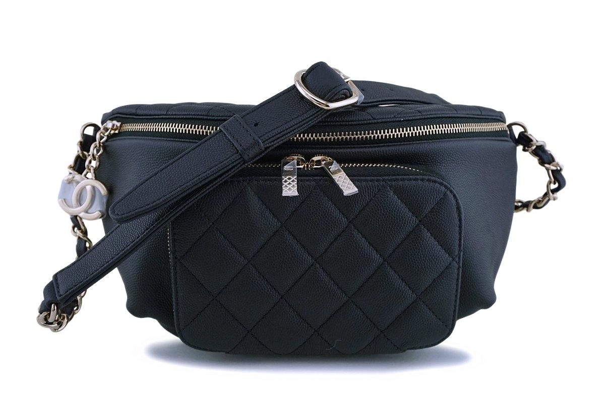 NIB 19P Chanel Black Caviar Business Affinity Fanny Pack Belt Waist Bag GHW