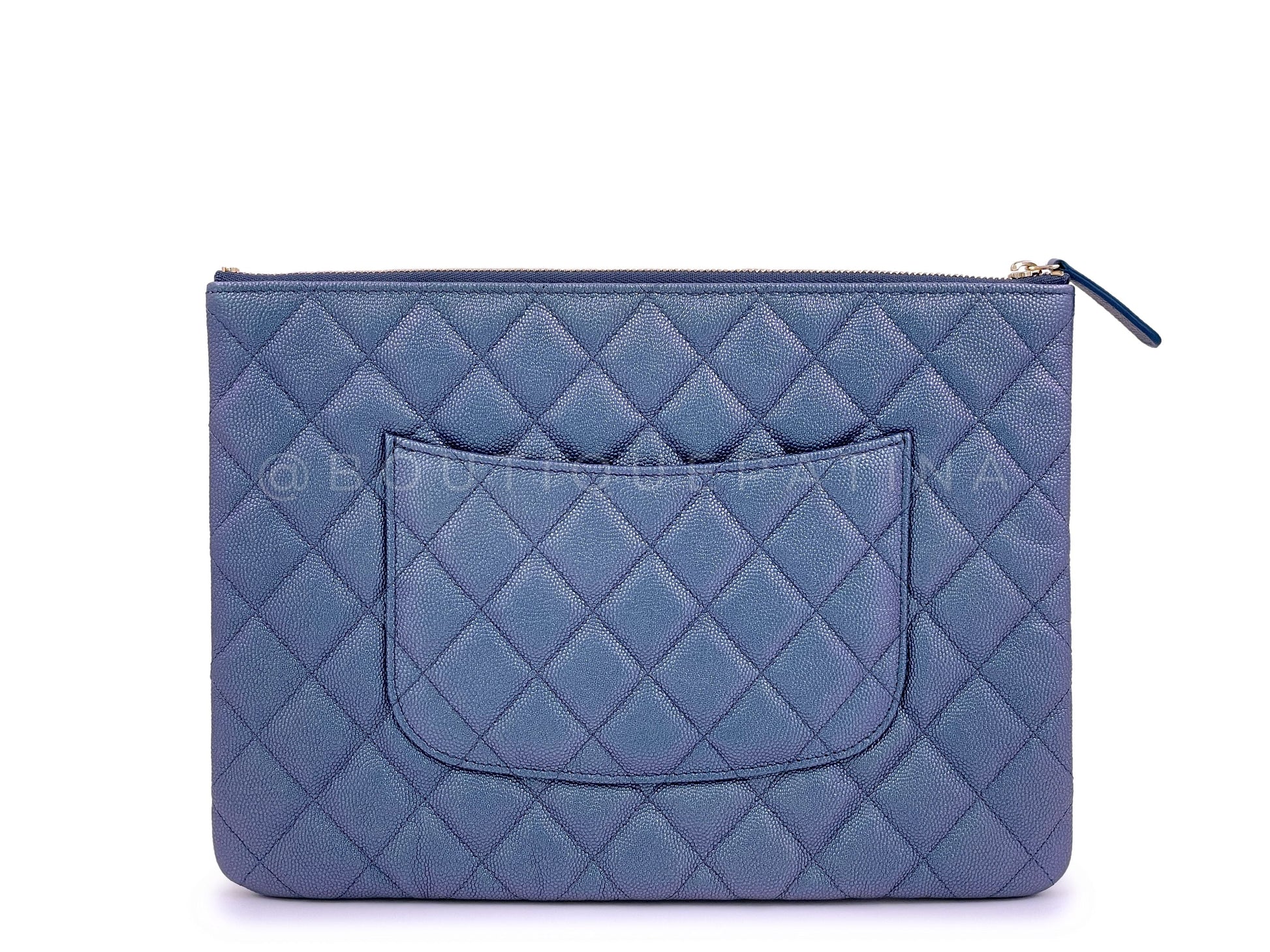 NIB 19S Chanel Iridescent Blue Pearly CC Caviar Medium O Case Clutch Bag