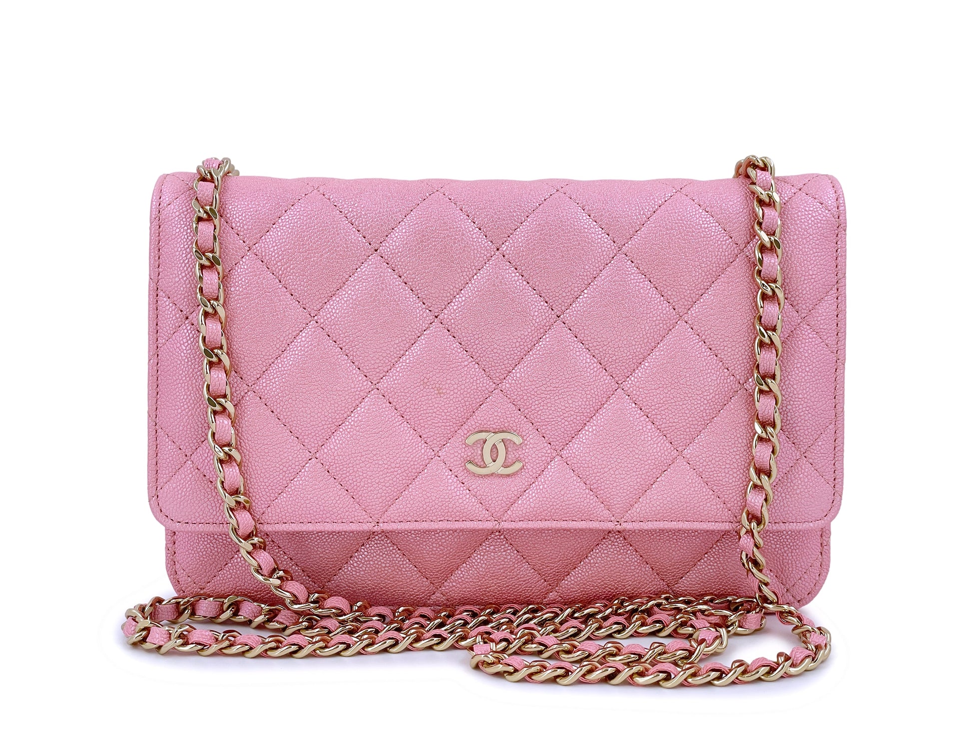 NIB 19S Chanel Iridescent Pink Caviar Classic Wallet on Chain WOC Bag GHW