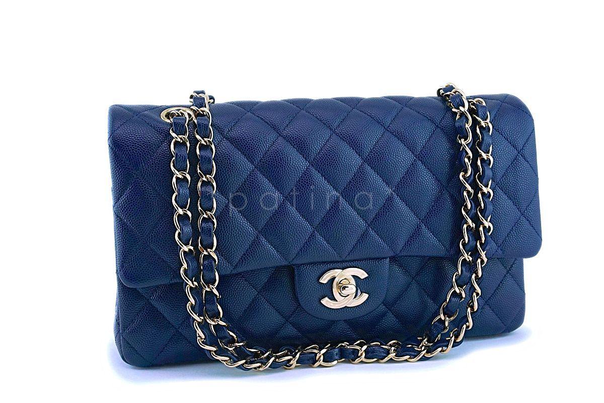 NIB 20C Chanel Navy Blue Caviar Medium Classic Double Flap Bag GHW
