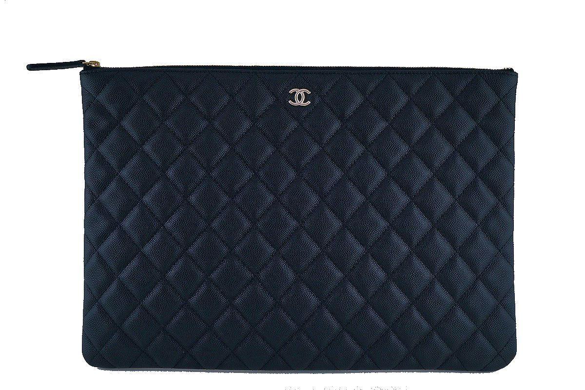 NIB Chanel Black Caviar Classic Quilted Large O Case Clutch Purse Bag GHW