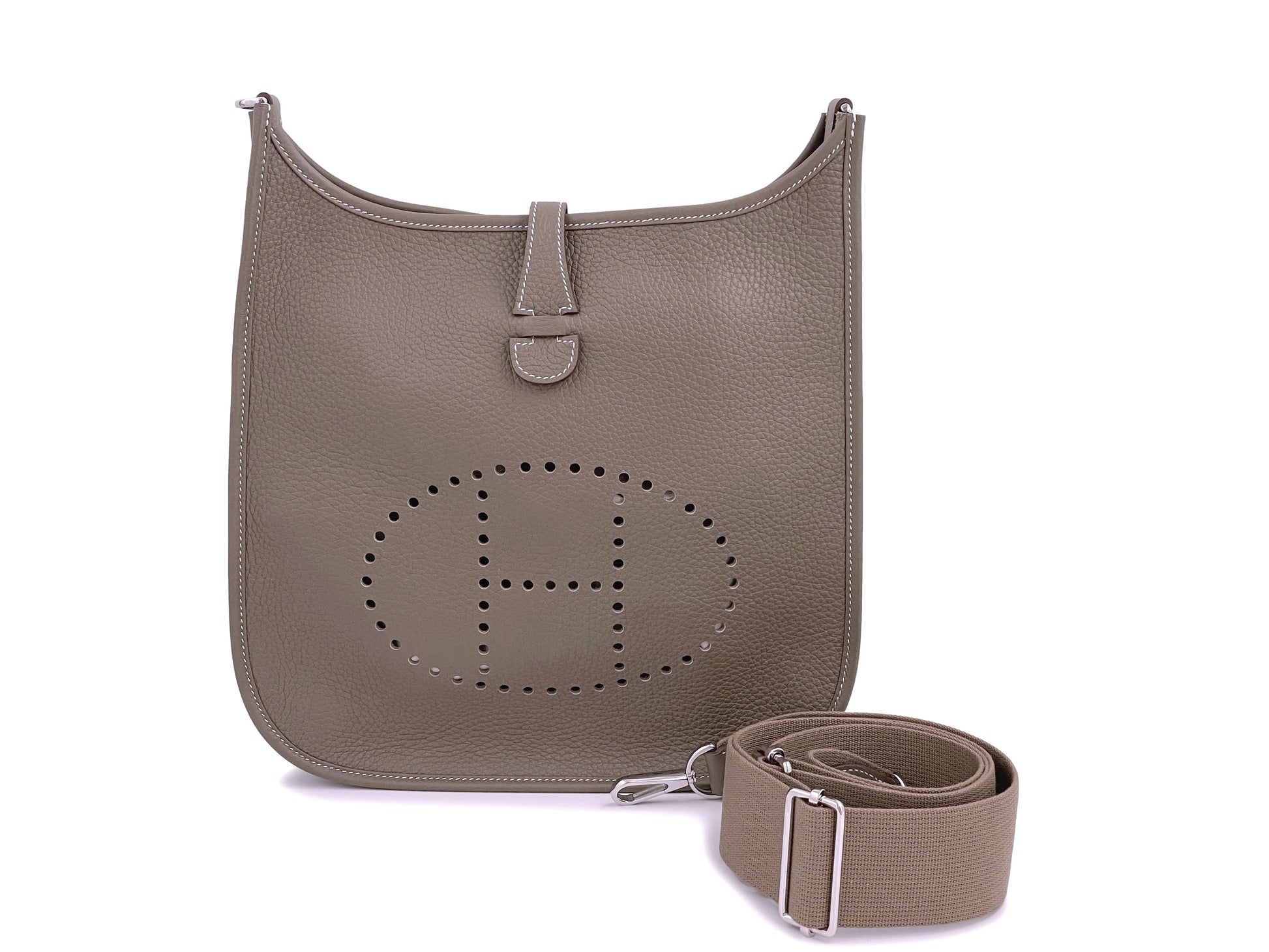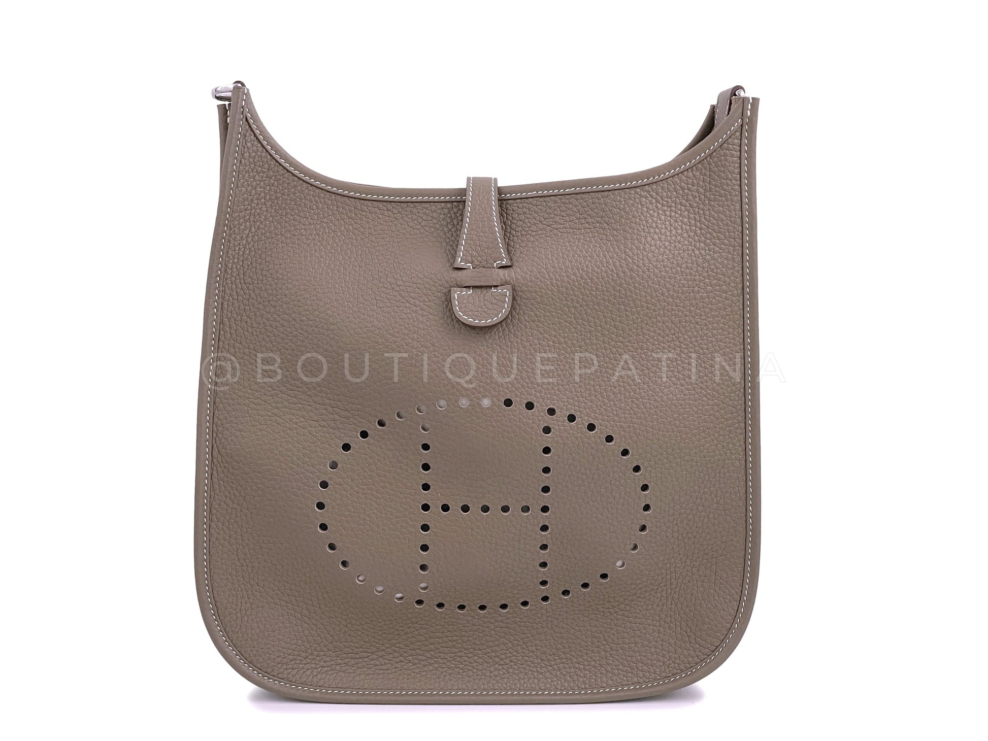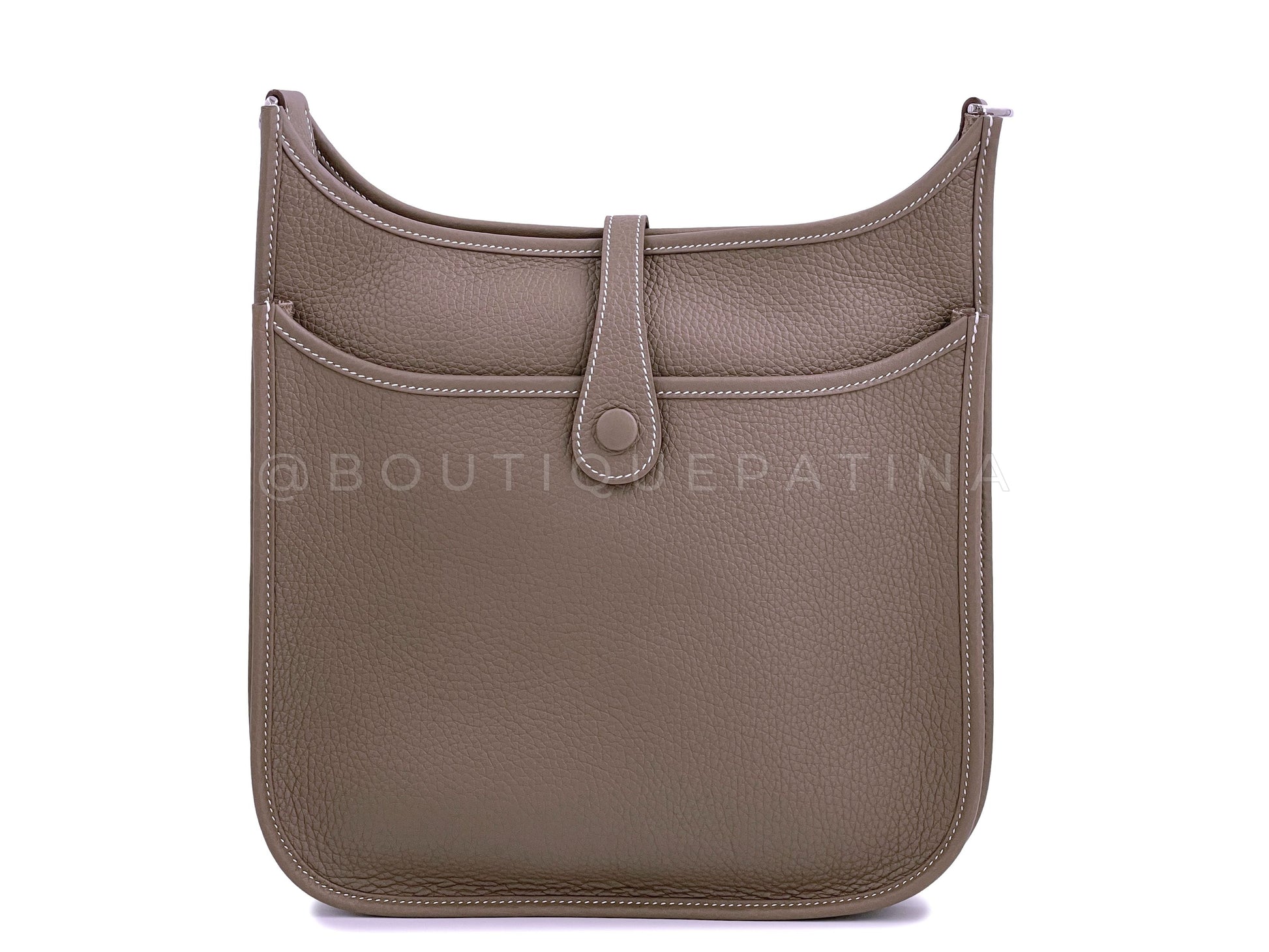 NIB Hermes Taupe Gray Etoupe Evelyne III PM 29cm Bag PHW Clemence