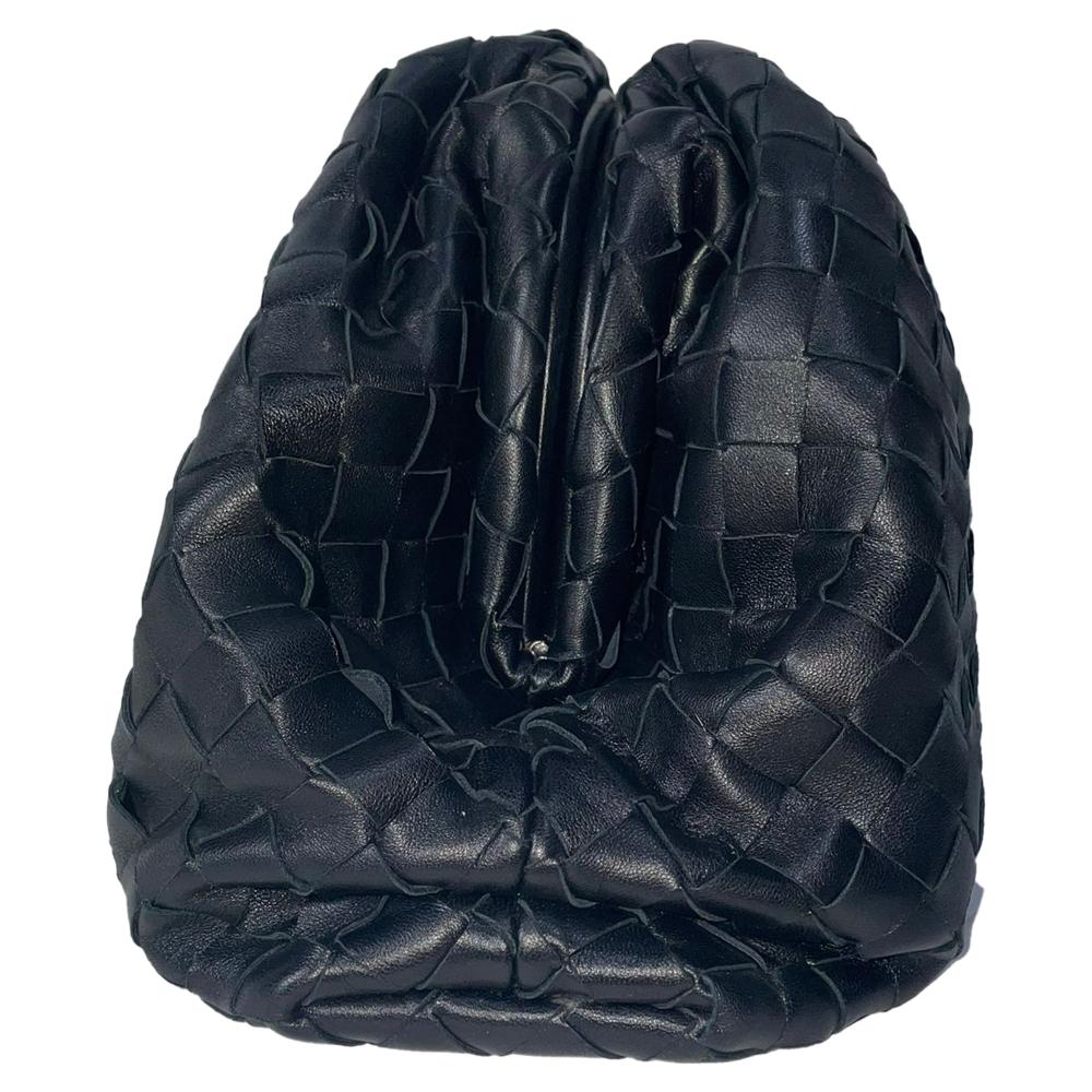 Bottega Veneta Pouch Intrecciato Bag in Black Calfskin Leather