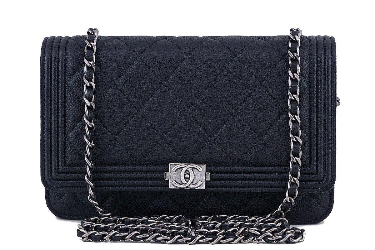 NWT 16A Chanel Black Caviar Boy Classic Quilted WOC Wallet on Chain Flap Bag