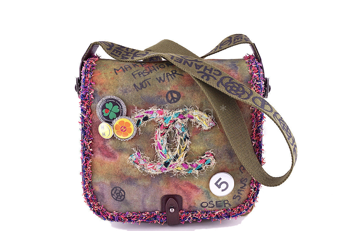 Highly coveted, limited edition and perfect for summer, fall and year-round is this Chanel Khaki Limited Ed. Graffiti On the Pavements Messenger Bag.