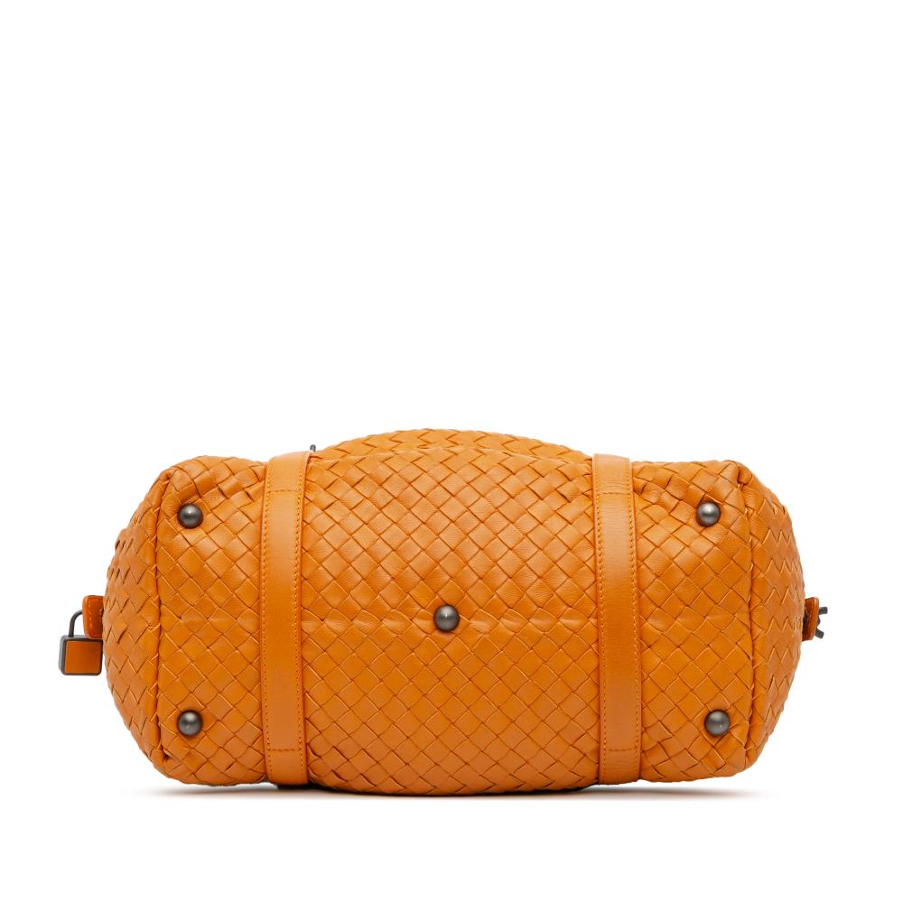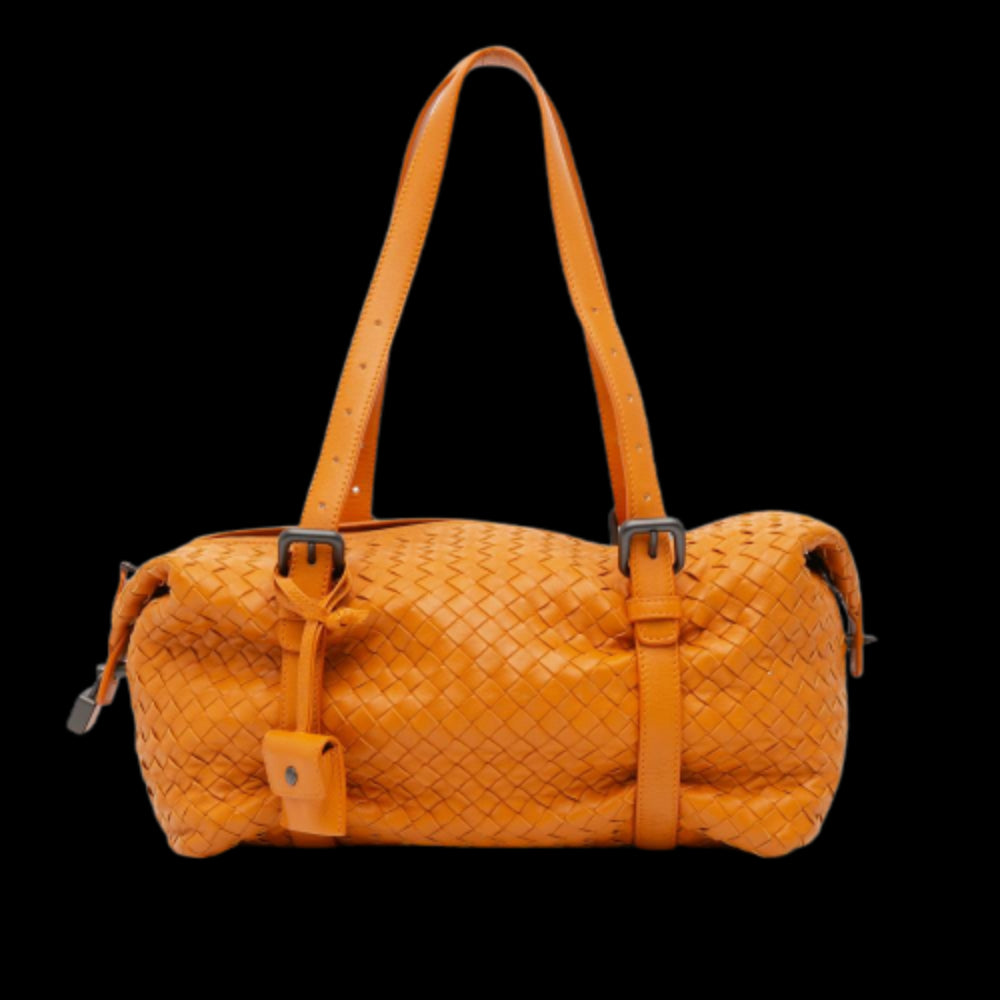 The Montaigne features a woven nappa leather body, flat leather straps, a top zip closure, and interior zip and slip pockets. It carries a B+ condition rating.Exterior Back Worn. Exterior Bottom Worn. Lock Scratched. Exterior Corners Worn. Embellishment Scratched. Exterior Front Worn. Exterior Handle Worn. Interior Pocket Worn. Key Scratched. Interior Lining Worn. Practical Attachment Scratched. Exterior Side Worn. Exterior Top Worn. Zipper Scratched. Dimensions:Length 30cmWidth 15cmHeight 23cmShoulder Drop 25.5cmOriginal Accessories: Padlock, KeySerial Number: B00839792EColor: OrangeMaterial: Leather x Nappa Leather