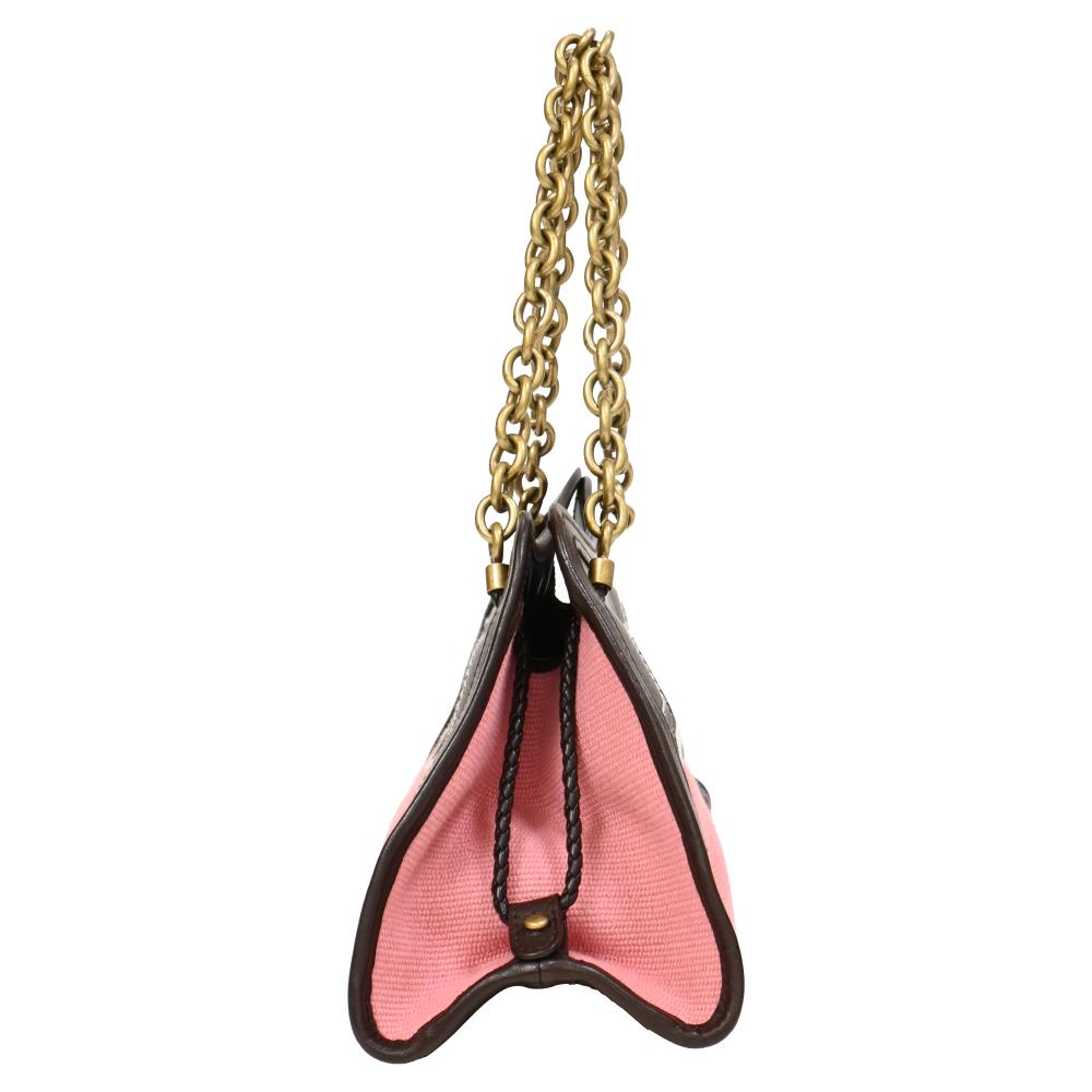Bottega Veneta Leather Trimmed Chain Strap Shoulder Bag in Pink Canvas