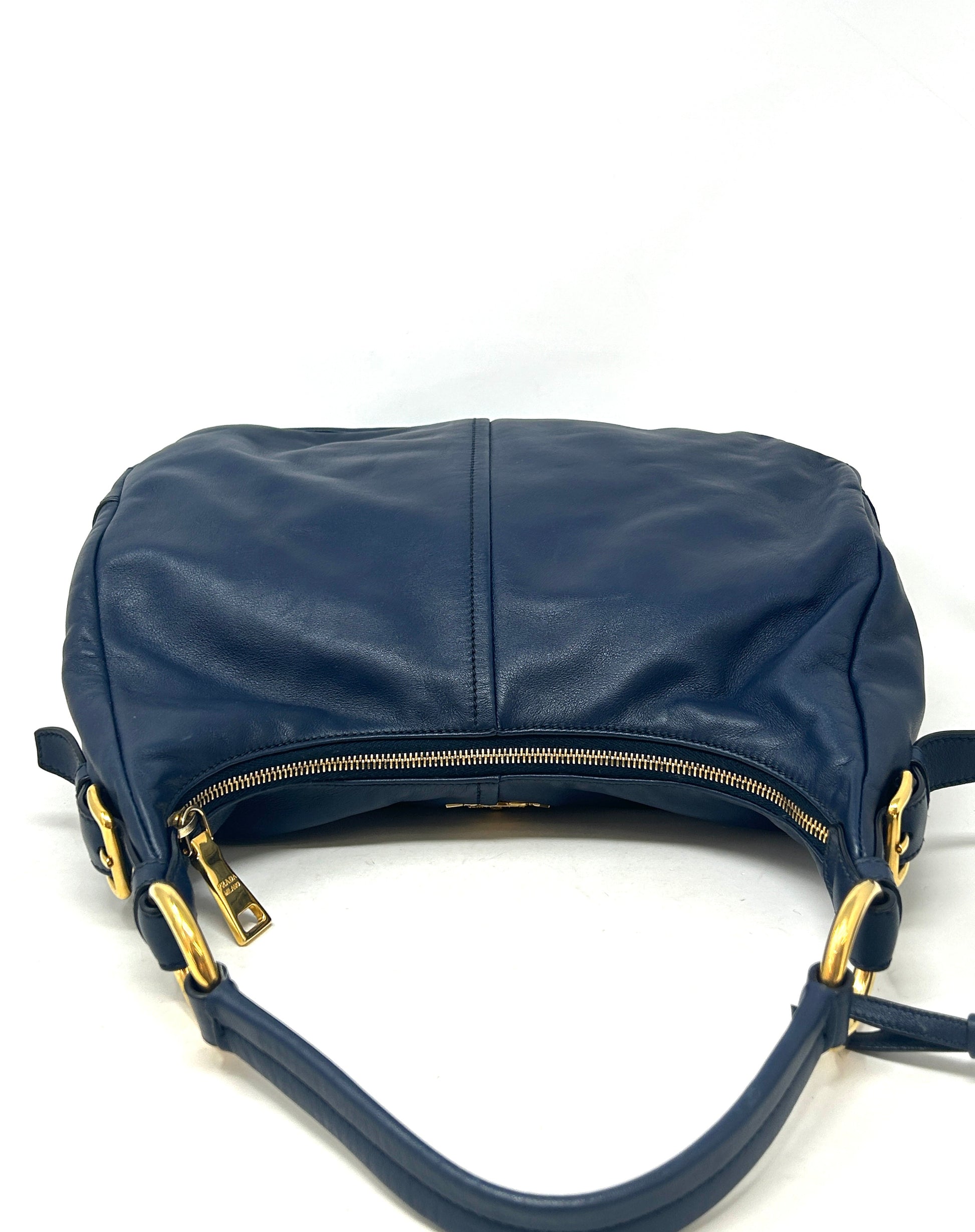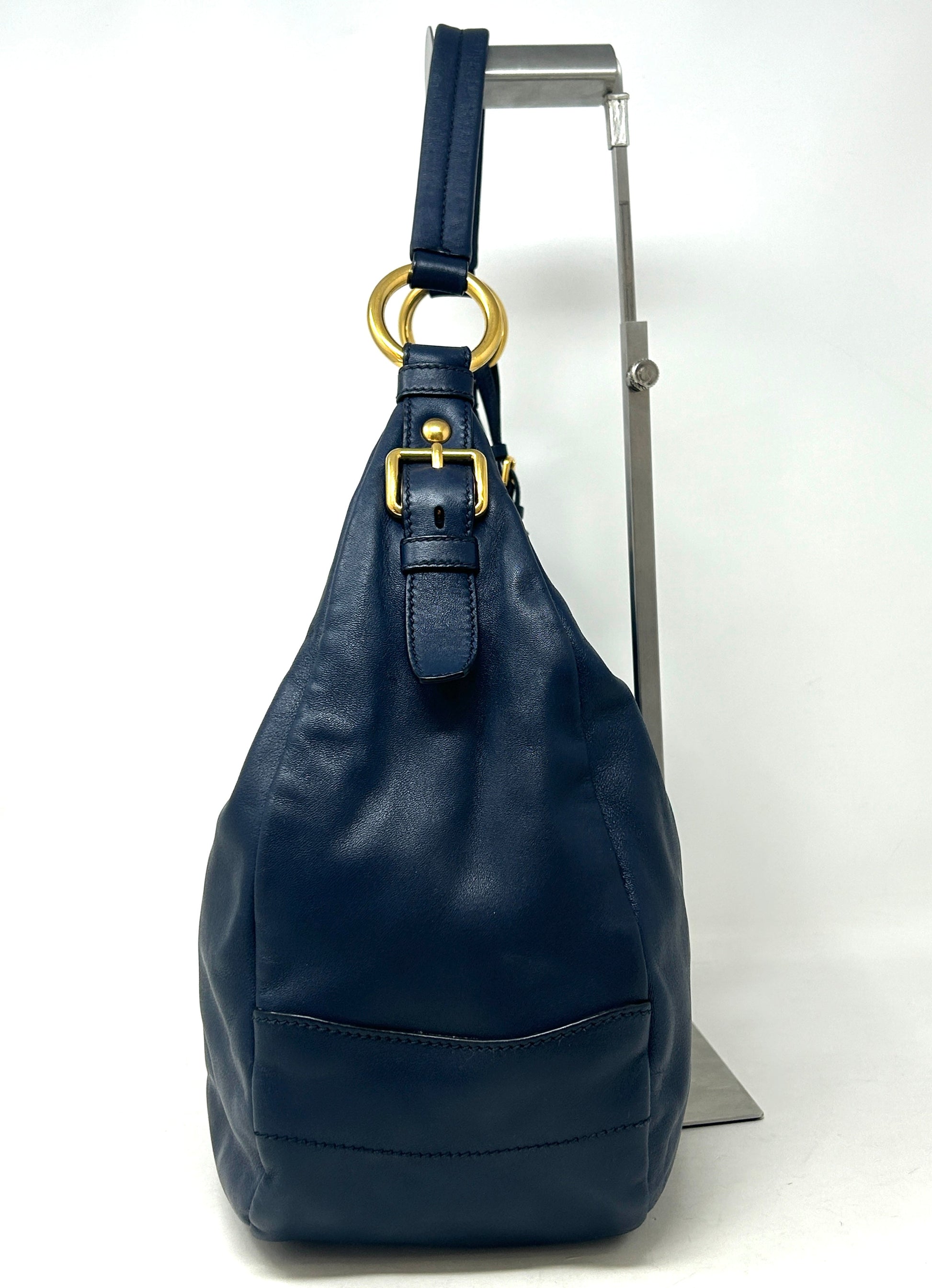 Prada Sacca Navy Blue Soft Calf Leather Hobo Shoulder Bag