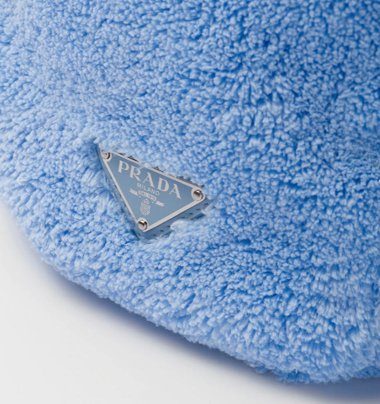 This bag is crafted of a deconstructed design in soft terry. It features re-nylon Prada lettering logo embroidered on the front, terry handles and an enameled metal triangle on the side. The interior has one zipper pocket.