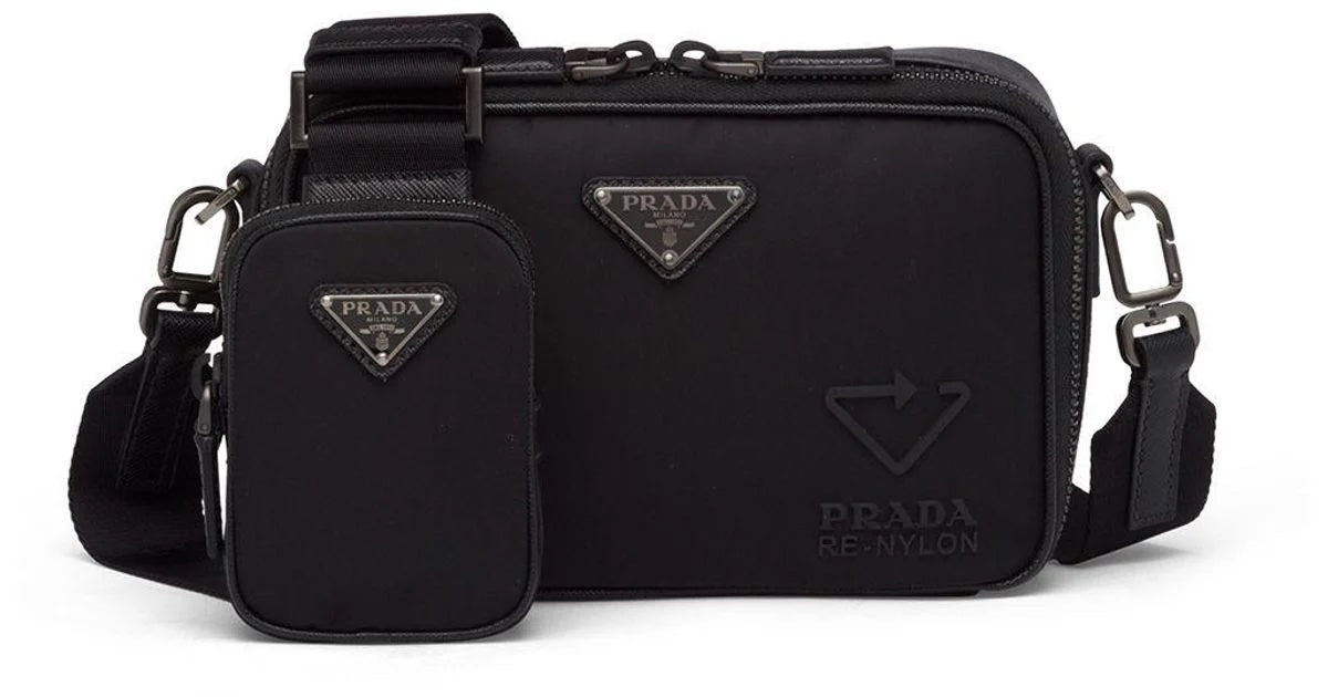 The contemporary Prada Brique bag has sleek lines and comes with a detachable nylon tape shoulder strap that makes it light and versatile. Re-Nylon, Prada's iconic material, is produced from recycled and purified plastic materials collected in the ocean and is combined with Saffiano leather accents for an unusual mix of materials.