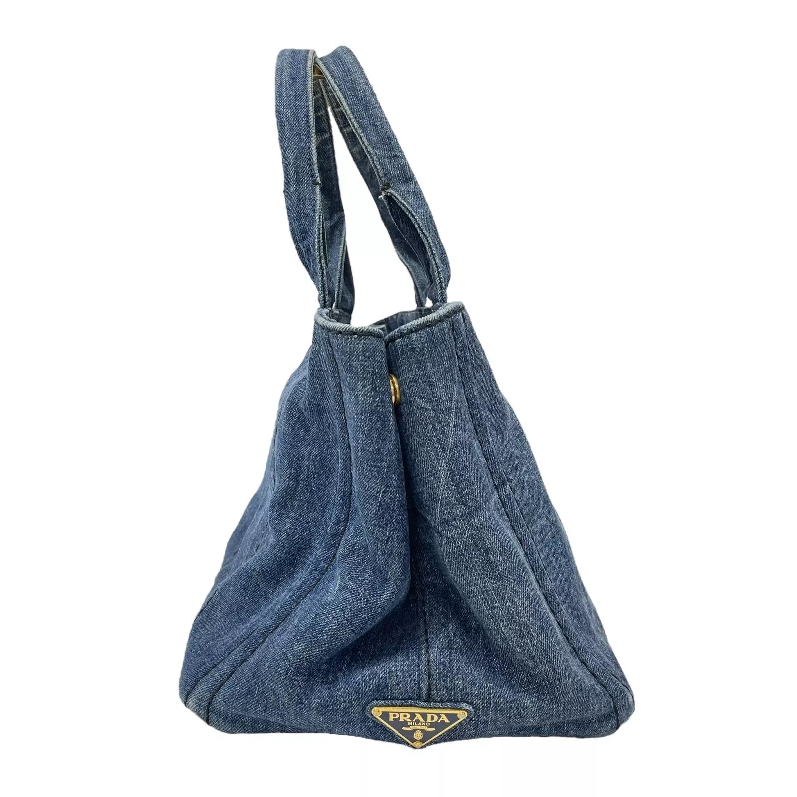 PRADA CANAPA DENIM SHOPPER TOTE BAG