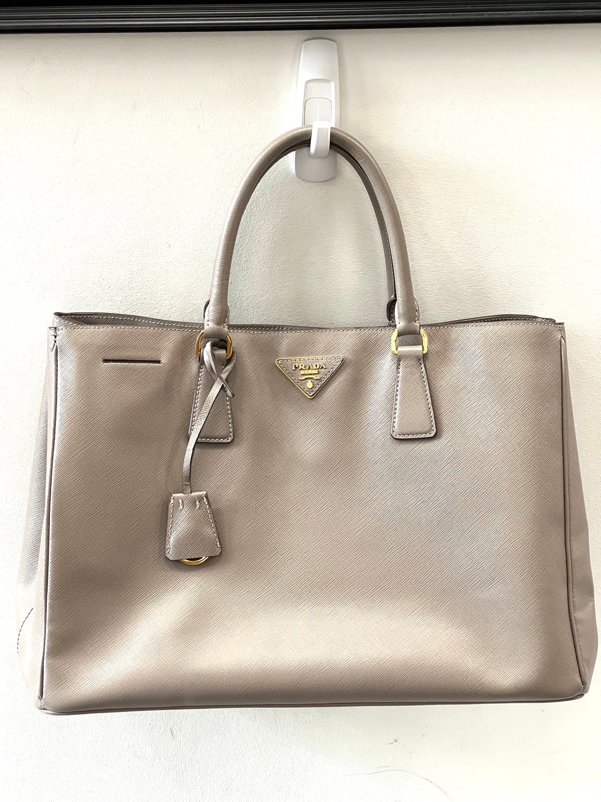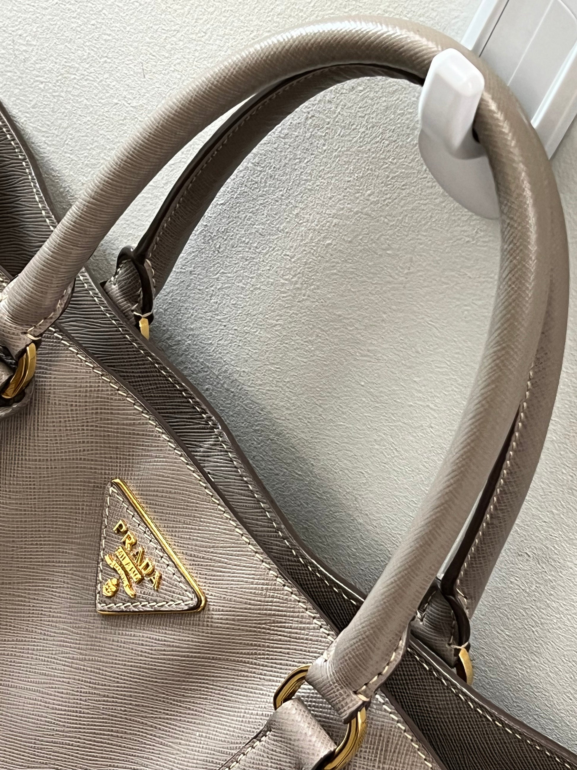 PRADA GALLERIA SAFFIANO LEATHER TOP HANDLE BAG GM- TAUPE